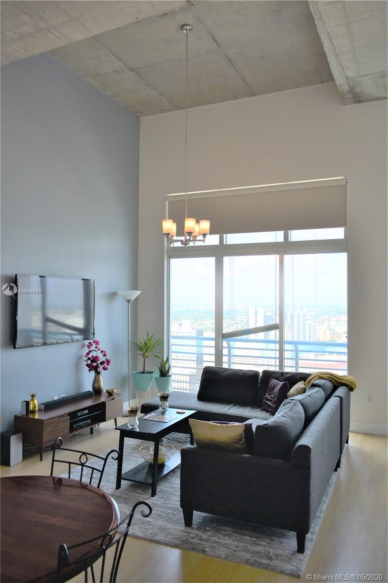 Stunning sunset views from the top floor of The Loft Downtown II! Units features soaring ceilings, open concept floor plan, in unit washer/dryer & balcony that over looks downtown Miami. Access all that Downtown Miami and Brickell have to offer with restaurants, shopping and more just outside the doorstep of the building. Four Blocks from American Airlines Arena, and less than two blocks to Bayside Park & Bayside Marketplace. Metromover stop located onsite. Secured Building featuring State of the Art Fitness Center, Sauna, Rooftop pool, Lower lap pool, Clubhouse/Community room and Parking in the adjacent garage. Water, cable & internet included in monthly dues.unit can be sold furnished.