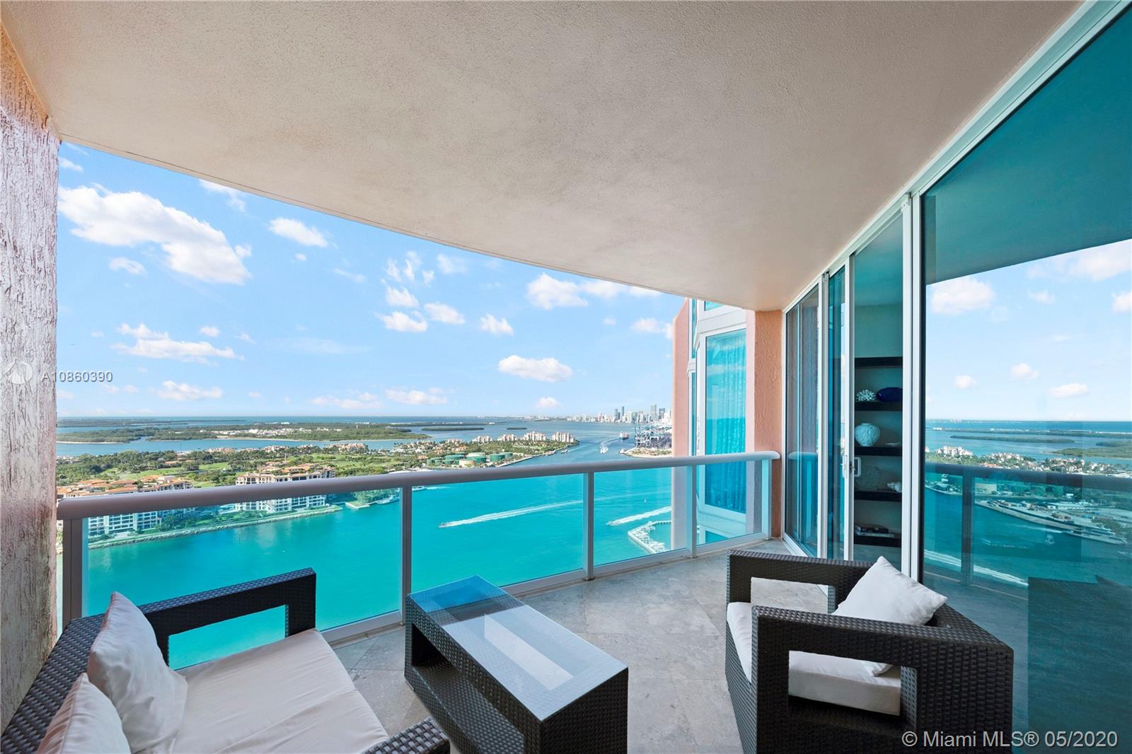 Incredible opportunity to own a completely renovated flow-through residence at the reinvented Portofino Tower located in the world renowned South of Fifth neighborhood. This spectacular residence presents a new kitchen, bathrooms, appliances, floors, lighting and more, and has not been lived in since being remodeled. Perched high on the 36th floor, you will experience unobstructed panoramic views forever both day and night, including sunrises/sunsets, ocean, bay, South Pointe Park and the Miami Skyline that comes alive at night. Portofino has a new lobby with 40' ceilings, modernized elevator cabs, and exterior amenities including two pools, outdoor hot tubs, poolside cabanas, tennis courts, dog park, BBQ/lounging areas, serenity garden,and porte cochére.