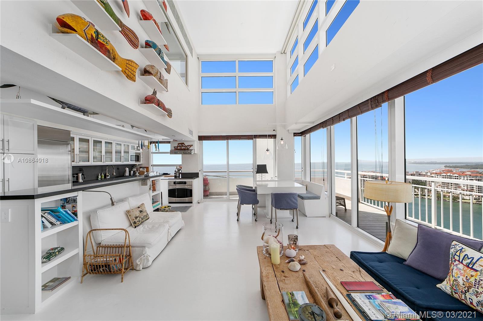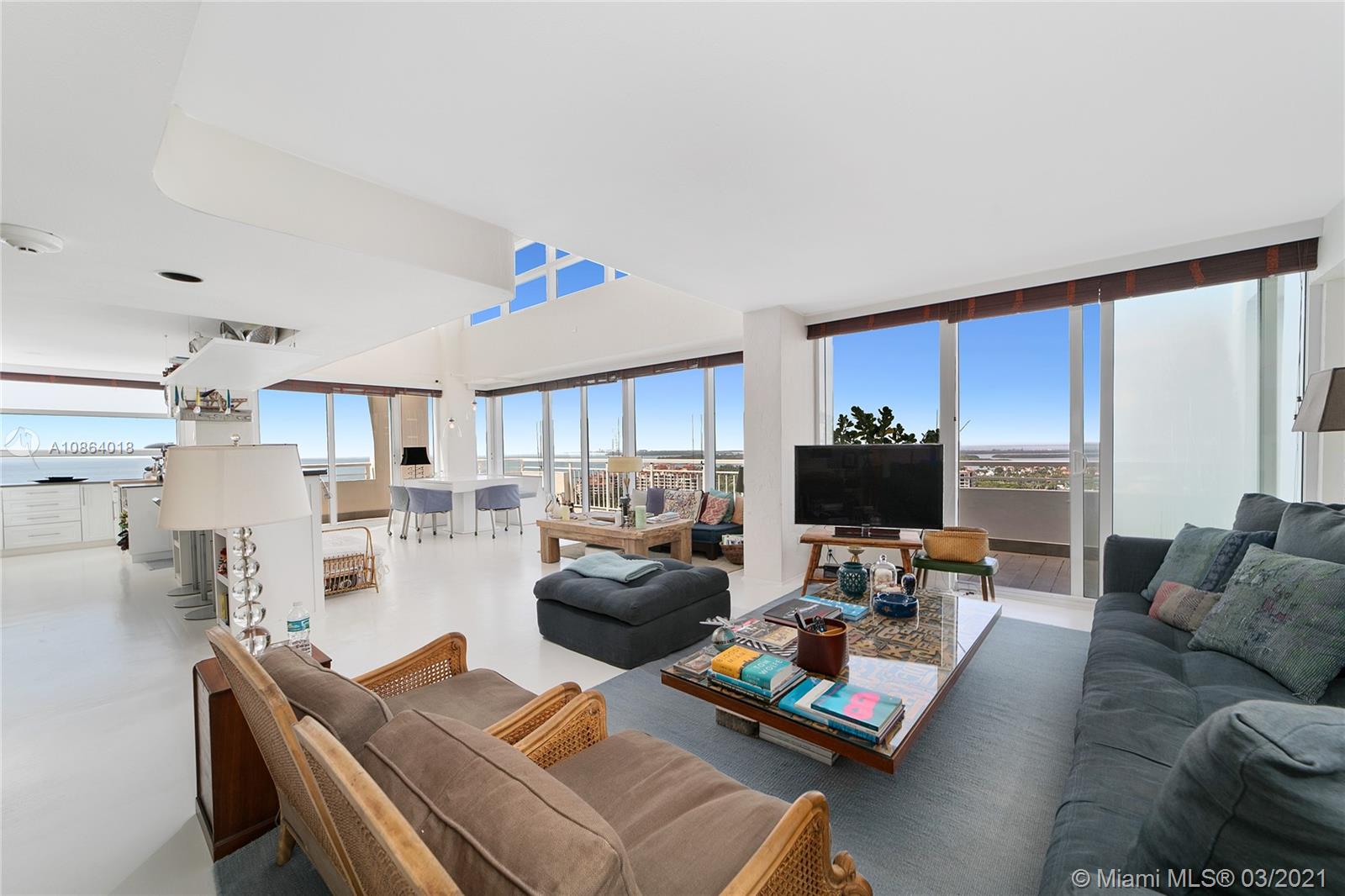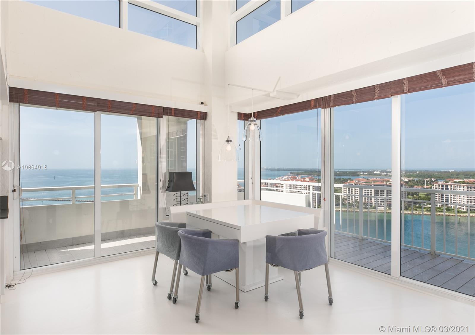 Duplex PENTHOUSE with 20ft ceilings! Southeast corner with unobstructed 270 degree views of Govt Cut, Miami skyline, Fisher Island and Ocean. The unit has been partially renovated with impact windows and new kitchen and feels more like a private BEACH VILLA in the sky than a condo. Currently configured as 3 BR + Den, 3 Baths. Over 600 sf of outdoor space from 3 terraces. The unit comes with 2 adjacent parking space conveniently located near building entrance. The building is in the final stages of a major renovation encompassing new pool deck, tennis courts, landscaping, interior hallways and fitness center. Project completion date is Sept and assessment of over $60K has been paid in full by Seller.