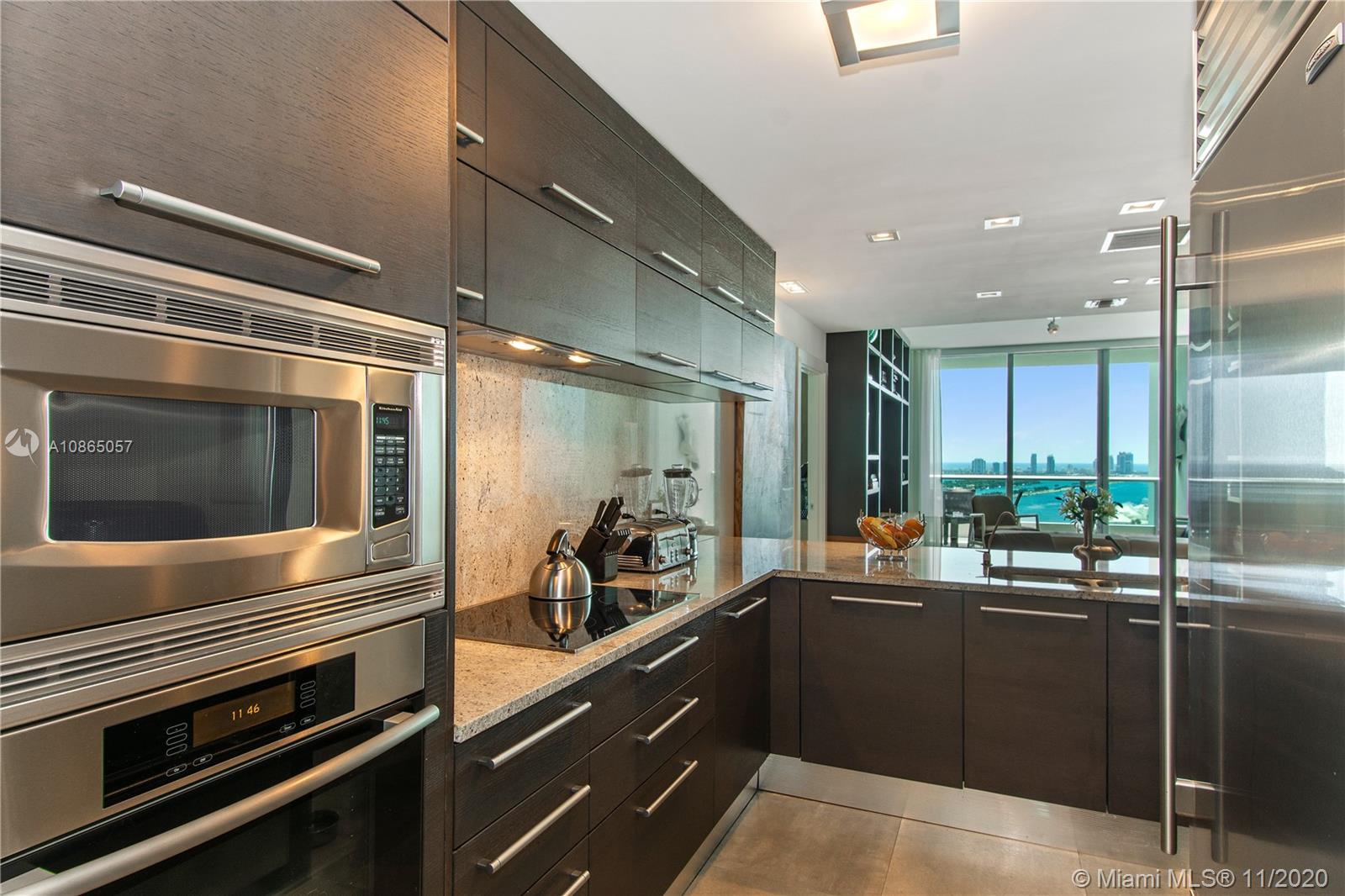 Two bedrooms plus den featuring direct east views of Biscayne Bay, Intracoastal, Ocean, and Miami Worldcenter. Private elevator lobby with direct entry to unit foyer. Prudently designed with white tile floors. 1712 square feet per floorplan. Primary Bedroom with walk-in closet that are completely built out. All bedrooms and den have direct entry to oversized terraces. Super luxury at its best. Full-service gym, spa, private theater, huge playroom with pool table. Recently renovated pool deck with 2 pools, towel service and barbecue gas grills for entertaining. 2 level lobby with private motor lobby. Currently tenant occupied with all rent paid in advanced.