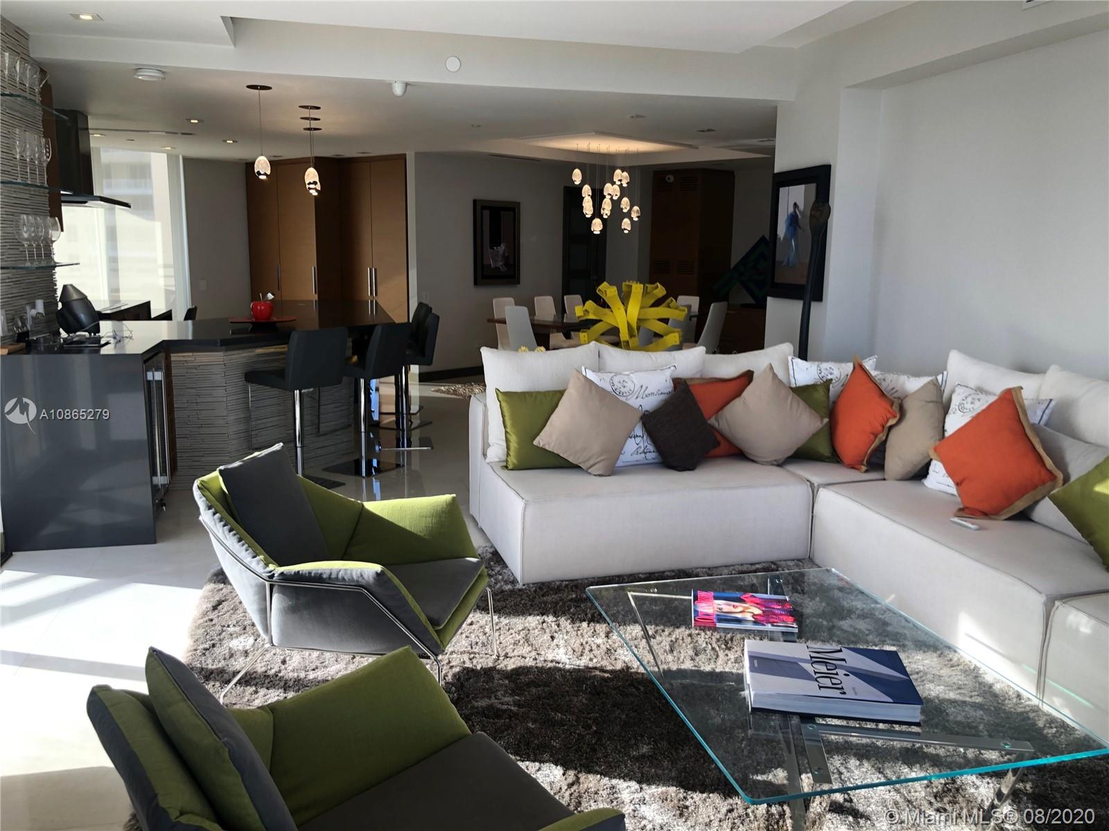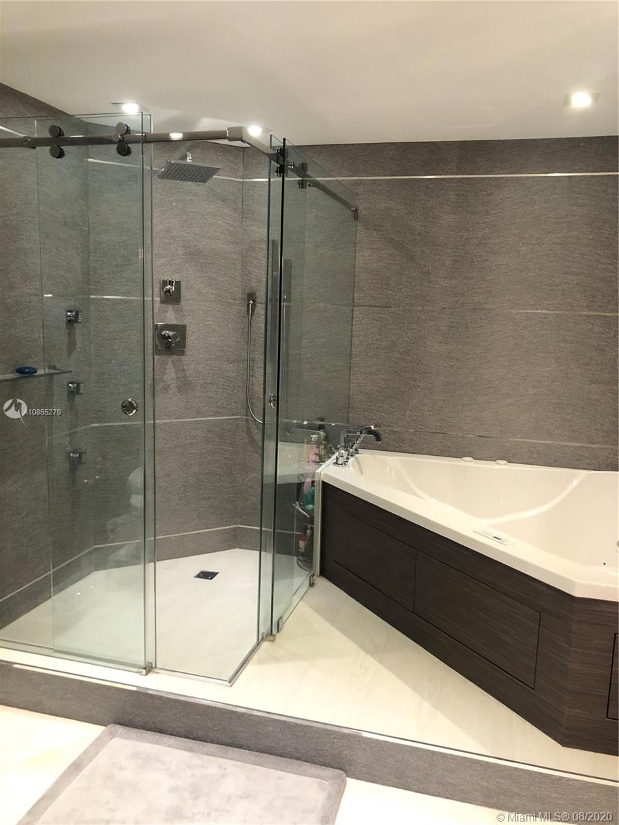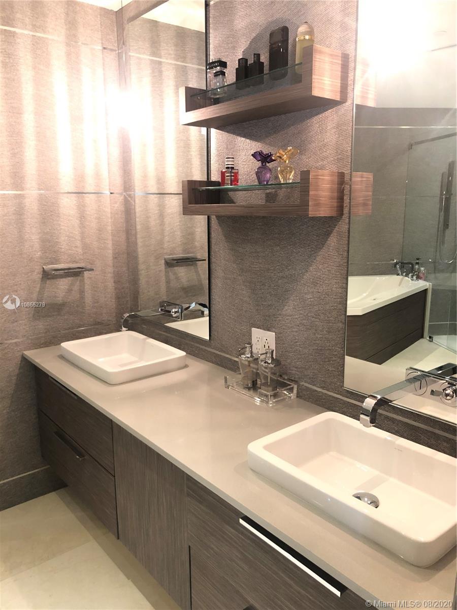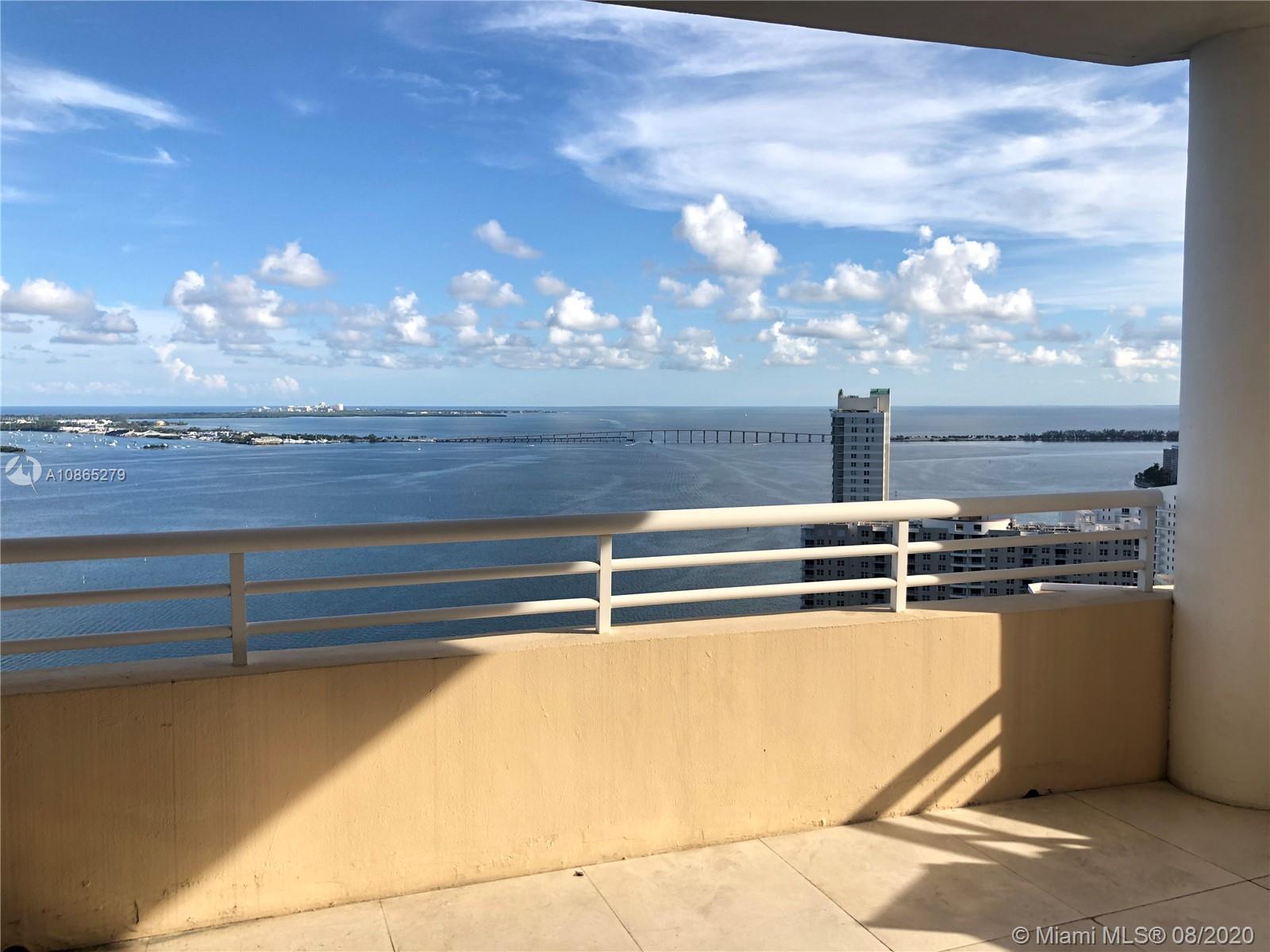 Completely Renovated Corner Unit, 2 bedrooms, 2.5 bath with amazing views of the Bay and Skyline. Apartment was fully remodel including new bathrooms, doors, open kitchen with top of the line appliances, counter-tops, bar, electrical blinds through the apartment, surround sound system, 2 parking spaces, and much more. Building in the prestigious Brickell Key, Two Tequesta recently updated excellent 2 floor gym, barbeque area, pool, tennis court and more. Must see