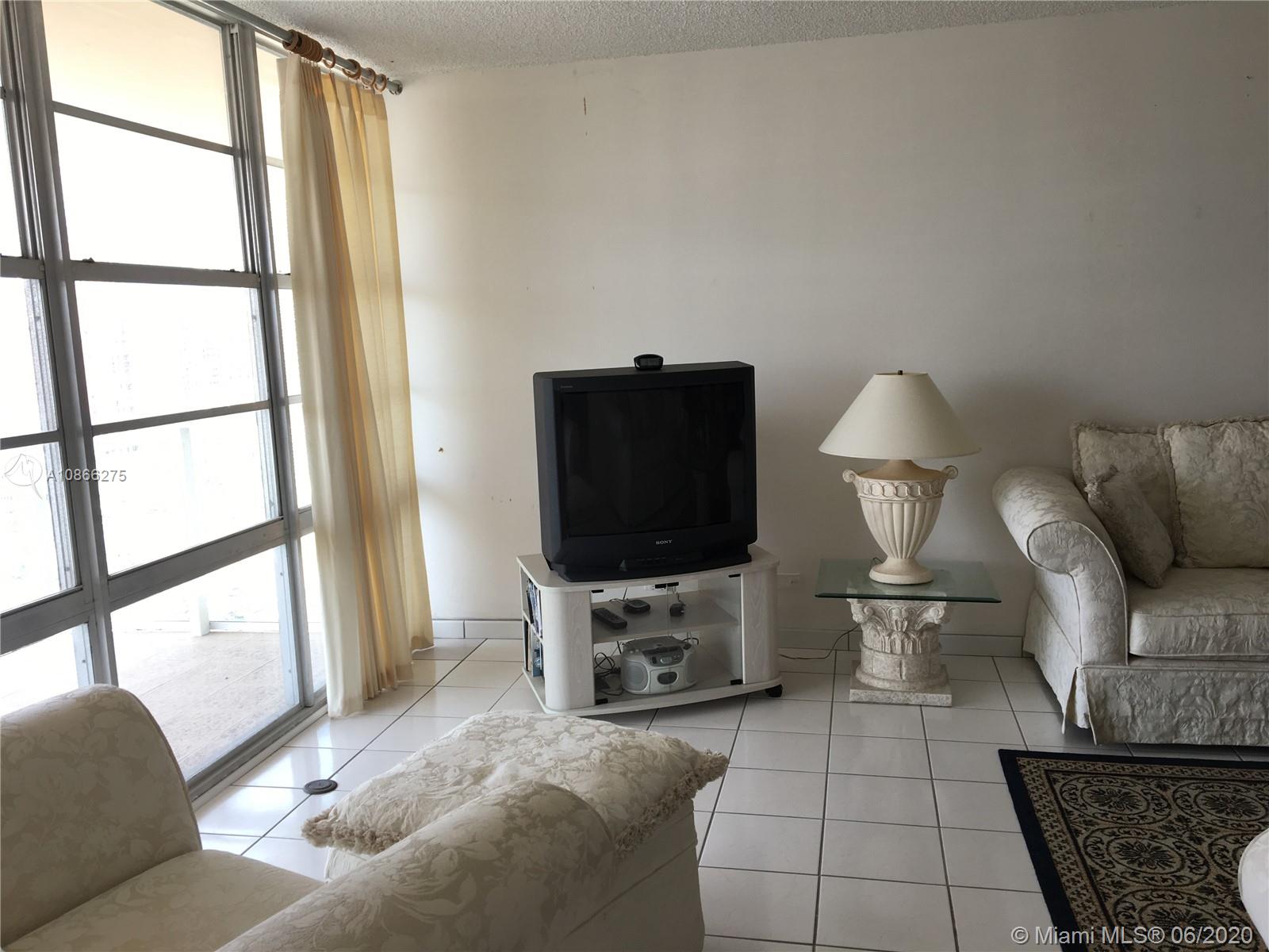 Beautiful large 2 bedroom 2 bath apartment with spectacular panoramic views form the 24th floor in booming Sunny Isles Beach. Large eat-in kitchen, closets galore, move in condition. Full service building, gym, billiard and game room, pool is under renovation. Walking distance to the beach, restaurants, shops, parks and houses of worship. Maintenance includes cable, internet and Total service contract for appliances. Excellent schools, amazing after school, summer camp and adult programs offered by the City of Sunny Isles Beach.