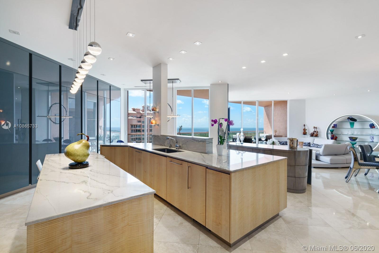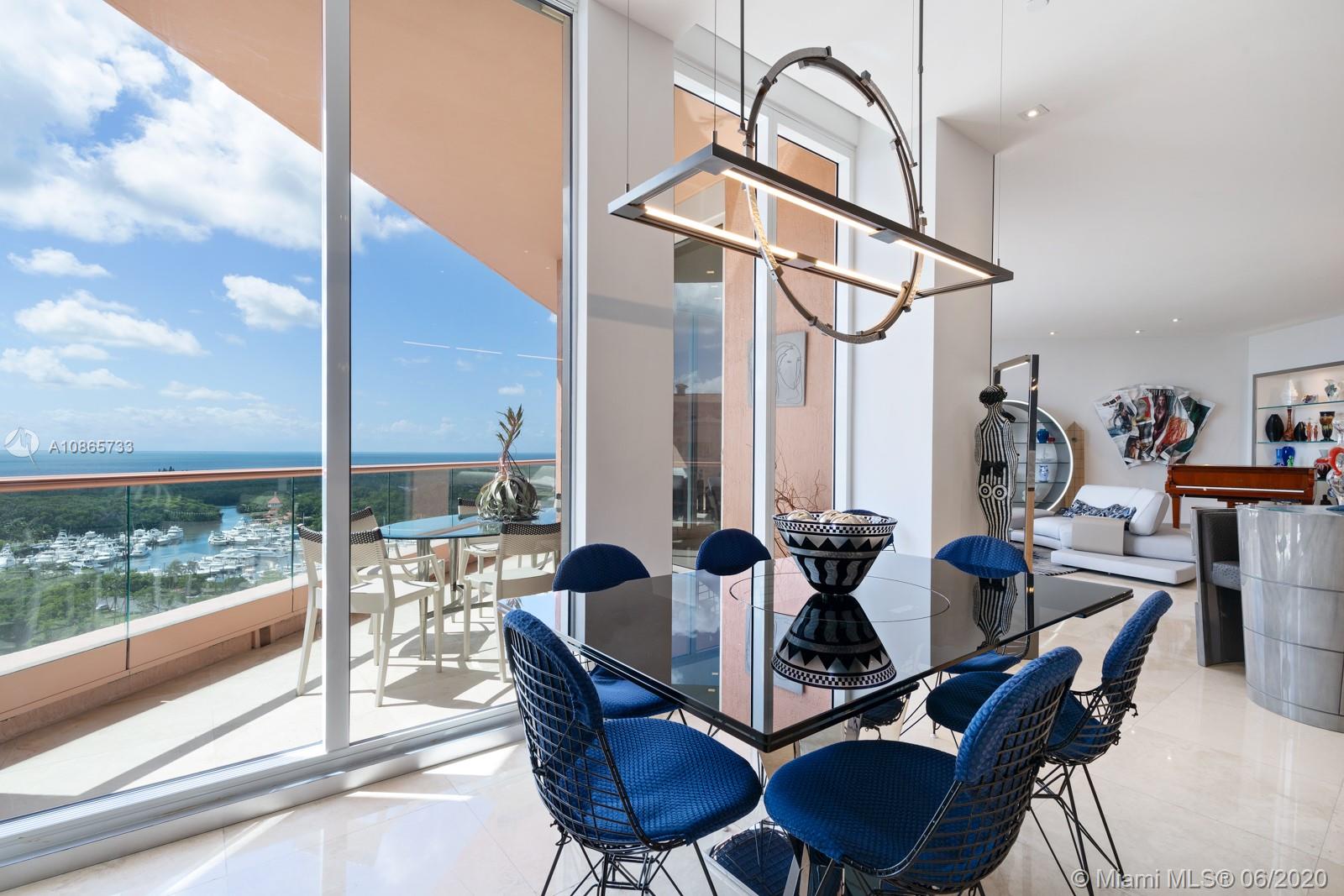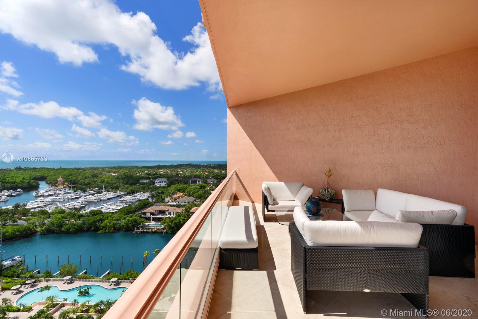 Contemporary elegance & aquamarine vistas define this exquisite Gables Club Penthouse perch. Every inch of the impeccable residence recently underwent a no-expense-spared renovation — from sexy/sublime decorator details, craftsman finishes, architectural fixtures, Wolf & SubZero appliances, to plumbing, electrical & ducting nuts/bolts. Flowing marble interiors enjoy ethereal, natural light. Distinguishing features include His&Her master baths & gorgeous “glass” kitchen. Drink in breathtaking open bay & city panoramas from Sunrise/Sunset sky terraces. Gables Club 5-star amenities include 24-hour concierge, 3-tiered security, valet, restaurant, clubhouse, spa, fitness ctr, heated pools & tennis courts. Top-flight, turn-key living at one of Miami’s premier waterfront addresses. Close Oct/Nov.