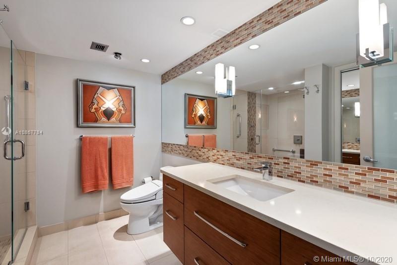 Waterfront Living-Completely remodeled open & bright 2/2 with custom shades covering floor to ceiling doors & windows. Large wrap-around balcony overlooks the ocean & Intracoastal. Unit features a modern color palate with quality craftsmanship throughout including kitchen cabinets with Glide-Out ShelfGenie convenience, sleek granite countertops & backsplash, organized closet spaces with Elfa shelving systems, high quality Bosch stacked washer, dryer & dishwasher, disposal, wine cooler & LG 4-door console fridge. A built in, space-saving custom California Closet office area with desk, shelving & loads of drawers keeps clutter to a minimum. Spacious walk-in MBR closet with organizer unit. High impact hurricane shutters & 4 storage lockers.