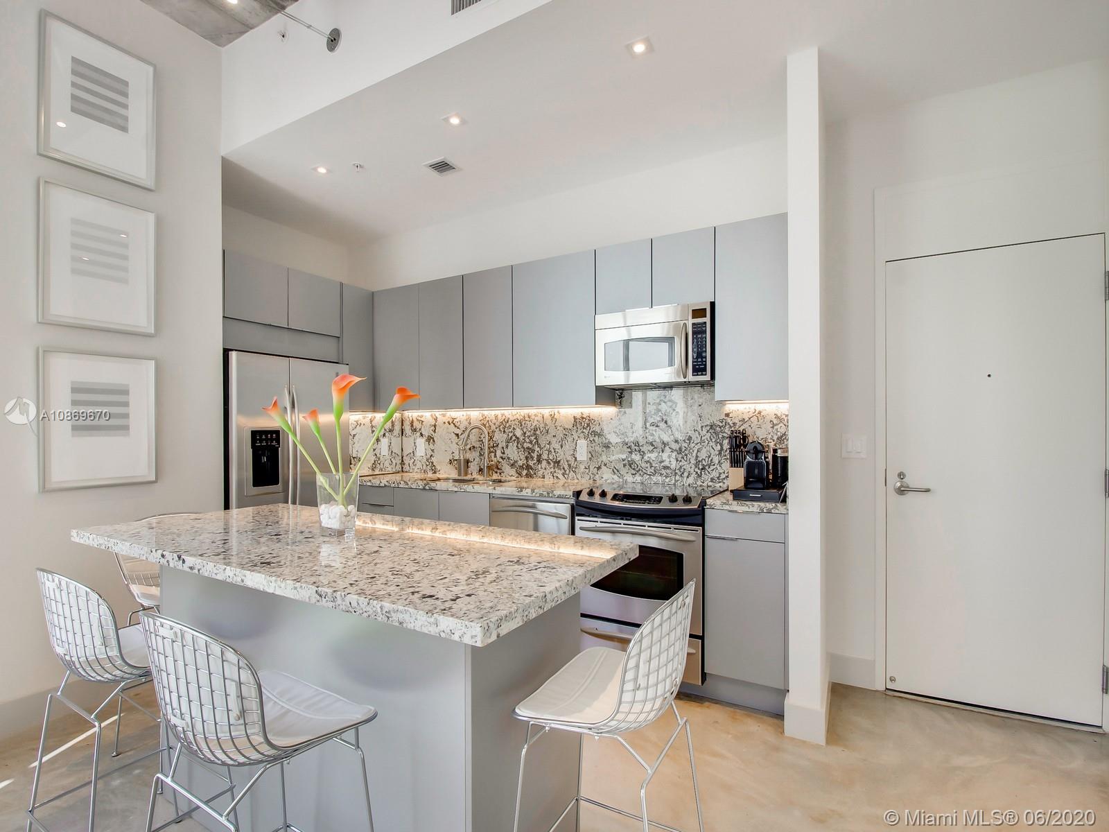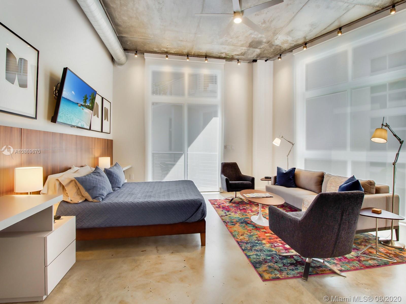 The Meridian is a Zyscovich-Designed Loft Building on Miami Beach. This turn-key unit with 11.5 ft ceilings is available fully furnished (original art negotiable). Amazing natural light and a view of the quiet Courtyard creates a relaxed aura upon entering this perfect pied-a-terre. Recent renovations and upgrades include a new "Trane" HVAC, Custom "Kitchen Island" with new granite counter-top, new Washer/Dryer, new kitchen sink and faucet, motorized shades and top-tier lighting fixtures. Completely remodeled bathroom featuring Duravit, Grohe & Toto fixtures, plus new huge Spa Shower & additional sleek custom storage cabinets throughout the unit. Located across from the Miami Beach Golf Club, & walking distance to Lincoln Road, Sunset Harbor, Miami Beach Botanical Gardens & the Ocean.