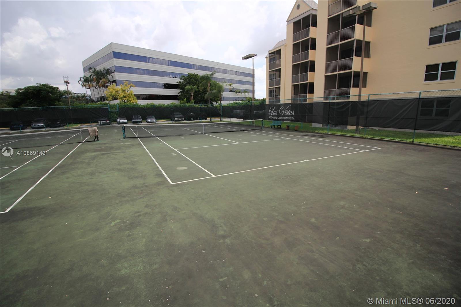 The BIGGEST 1Bed/1Bath model in Las Vistas Condo. Great property for First Time Home Buyers or Investors. This unit in conveniently located in the 1st floor close to the parking area as well as having the BIG WASHER & DRYER UNITS INSIDE the property with screened balcony. TILE & WOOD FLOORS throughout the property. Spacious bathroom with walk in shower, NO TUB. Association is low for everything that it includes like pools, tennis court and racket ball courts, Gym and gated entrance and it is in DORAL close Palmetto Highway, Cityplace, Publix, Downtown Doral, the BEST Doral Schools and more! Schedule your visit before its too late.