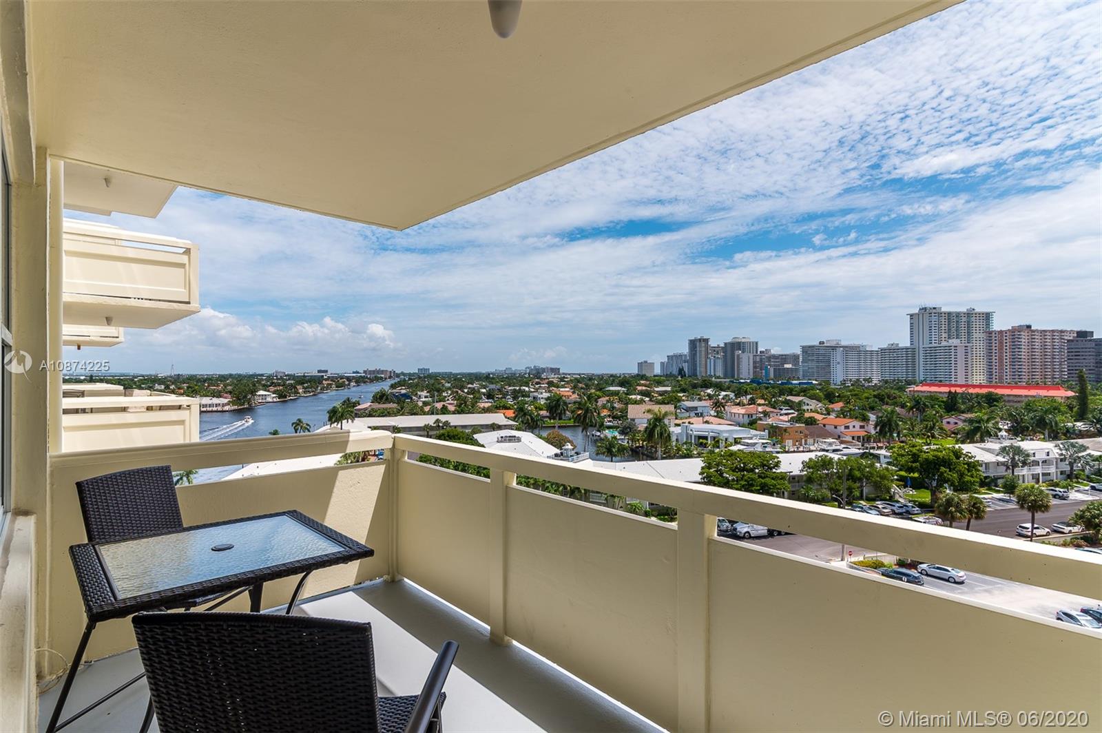 Amazing intracoastal & ocean views! Watch the boats go by while relaxing in this extremely spacious 1 bed, 1 bath residence located in the prestigious Coral Ridge towers. Remodeled kitchen features granite countertops, tile backsplash, stainless steel appliances, & an open concept with a breakfast bar. All windows & doors are hurricane impact resistant. Tile flooring throughout all the main living areas & carpeting in the bedroom. Conveniently located near many shops, restaurants, & walking distance to the beach! Coral Ridge offers a ton of amenities which include a heated pool, recreation room, fitness center, shuffleboard, BBQ area, 24-hour security, car vacuum, & a library! 55+ community - no renting & no pets. Association requires a minimum of 50% down.