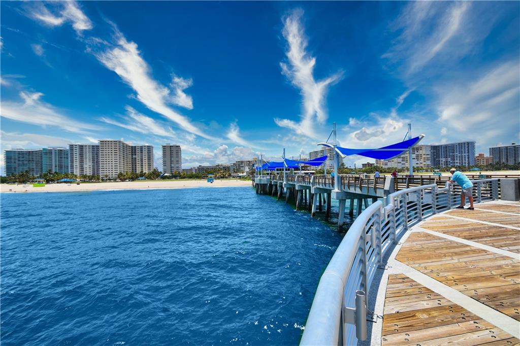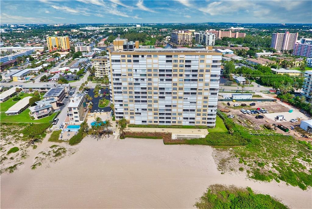 Completely updated turnkey northeast corner unit with unobstructed direct ocean views and large wrap around balcony. This raised first floor unit with private entry is perfect to park outside your door and walk right into your beachfront slice of paradise. No need to walk through the lobby. Eat in kitchen with granite counters, breakfast bar, stainless steel appliances, full size washer and dryer inside the unit, hurricane impact windows and doors and coffered ceilings. Both ac and water heater newer. Oceanside heated pool, fitness center, 24 hour concierge, community room, BBQ grills, car wash and extra storage. Shuffleboard. Views of the brand new Pompano Pier. 55 and older building- low monthly maintenance. Turnkey