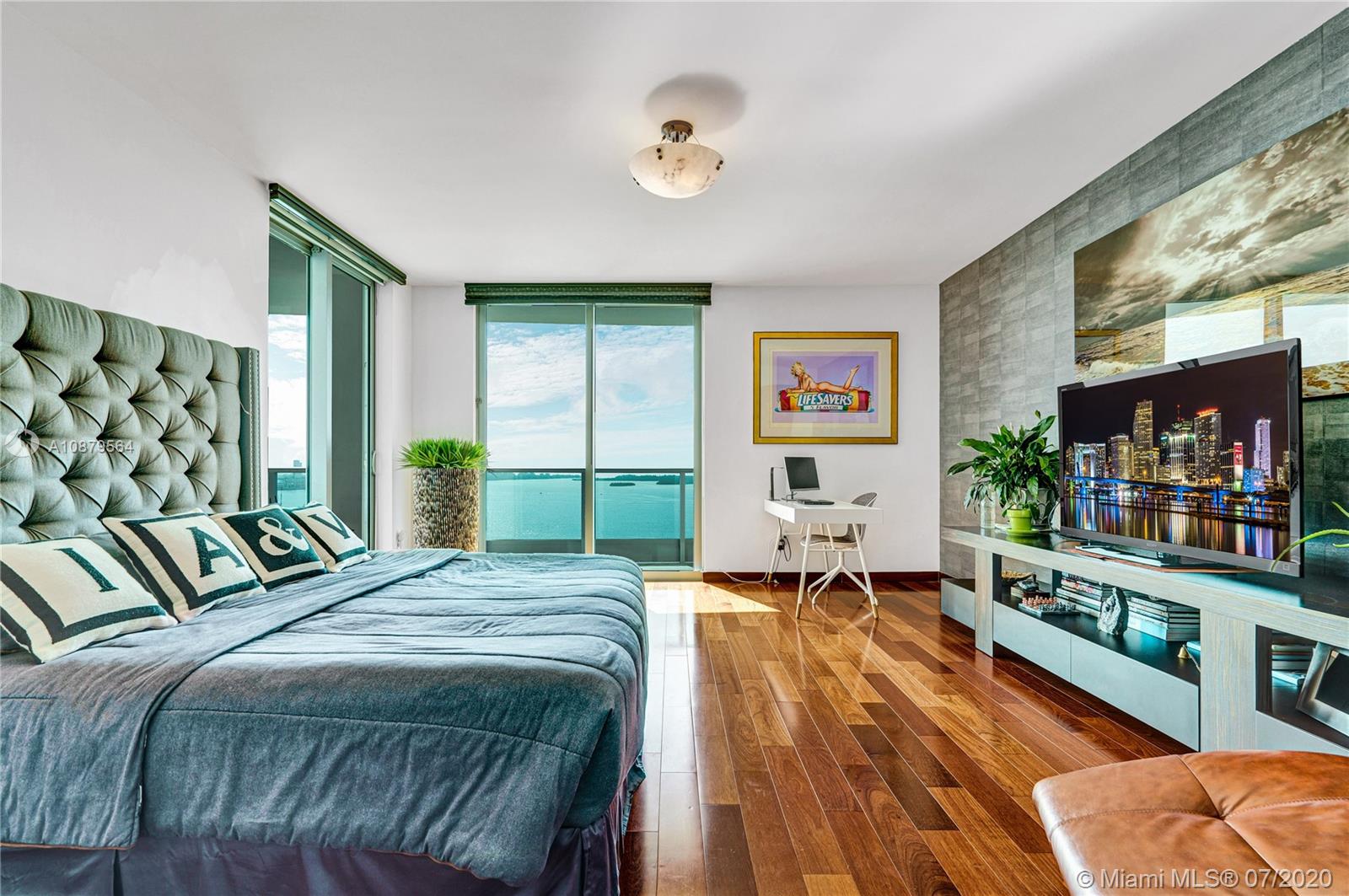 Most sought out corner unit in Miami. This 2/2.5 condo with unobstructed panoramic views of bay, ocean, and city. Approximately $150,000 worth of upgrades/additions, including surround sound system, high-end kitchen appliances — Subzero and Miele, Hunter Douglas window shades and walk-in California Closets (original brand). Italian designed Murphy/Sofa bed by Anima Domus, Bo Concept designer shelves, and a Gary Shear designed drop ceiling! Light beige marble floors and hardwood floors in the bedrooms. Living area sq footage of 1878 sq ft plus a gorgeous 360 sq ft balcony! Maintained in immaculate condition by the owner/occupier since purchase in 2013 and never rented out. Only 1 owner ever that lived here.