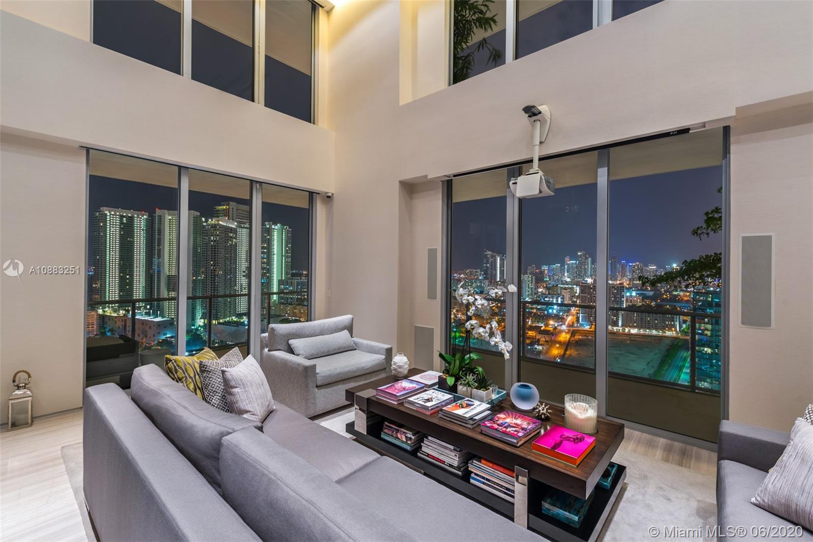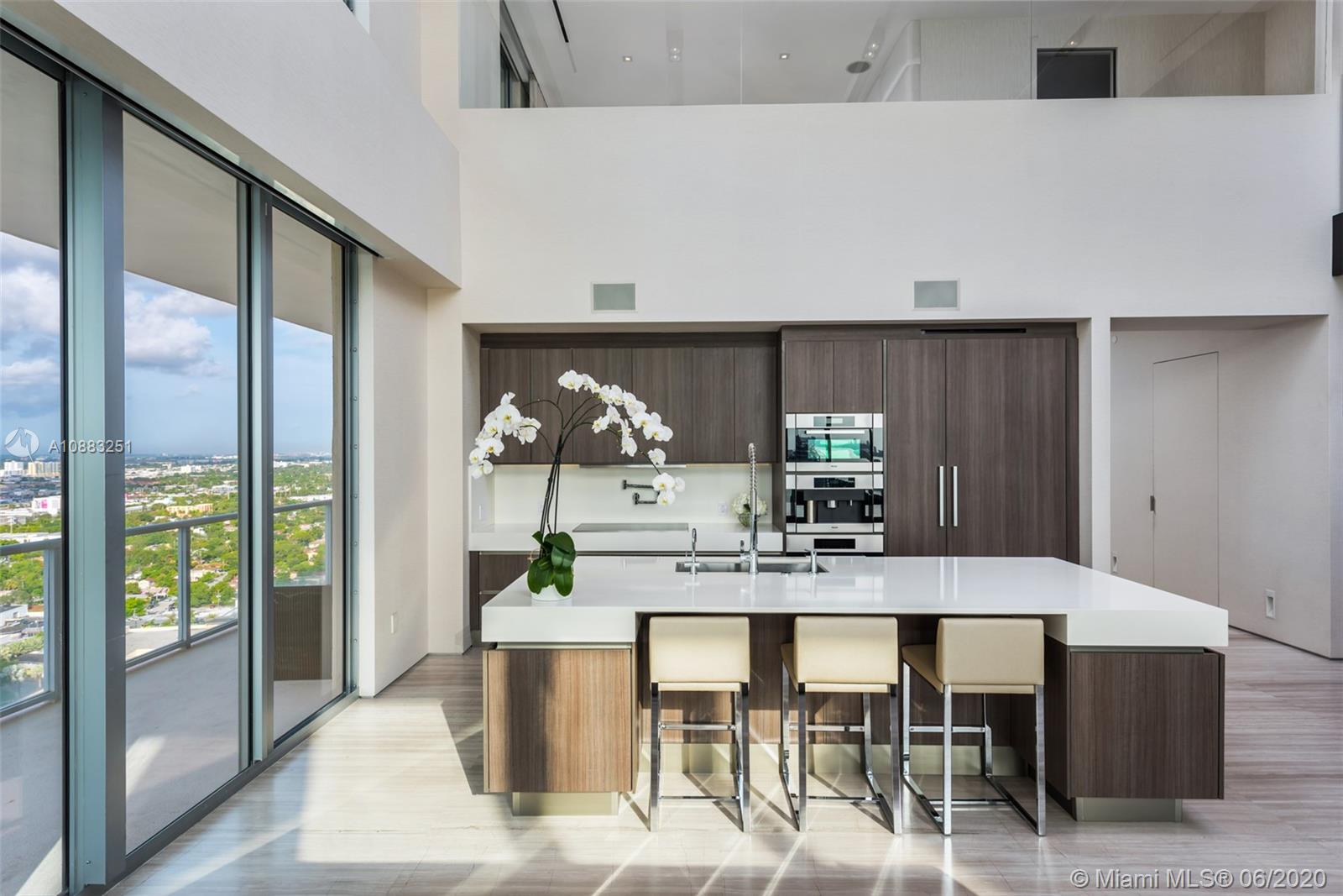 From the one of a kind-floating staircase to the beautiful sky garden, this Penthouse located in the most up and coming neighborhood in Miami has it all. Four full suites, 8 ft seamless doors & honed Vena Grigio marble throughout. The kitchen is a culinary dream, featuring Miele appliances, Ornare custom cabinetry, absolute blanc quartz countertops & an oversize 10 ft long island. Enjoy entertaining indoors with 270 degree views from the living room boasting 22 ft ceiling or outdoors on the wrap around terrace with two verandas facing east, south and west. Boasting a recent $2.5M lobby renovation and countless amenities and services, walking distance to the Design District & Wynwood, Two Midtown provides the complete Miami lifestyle.