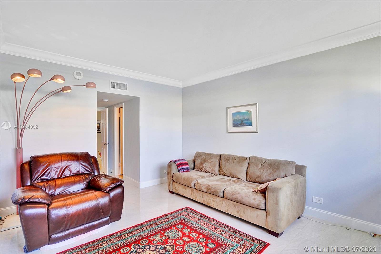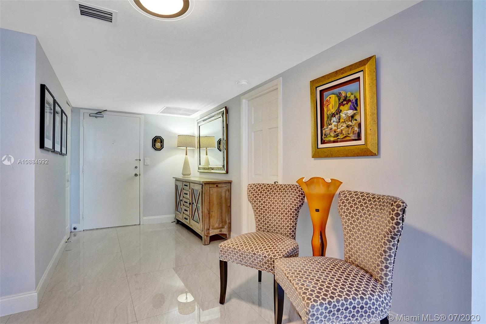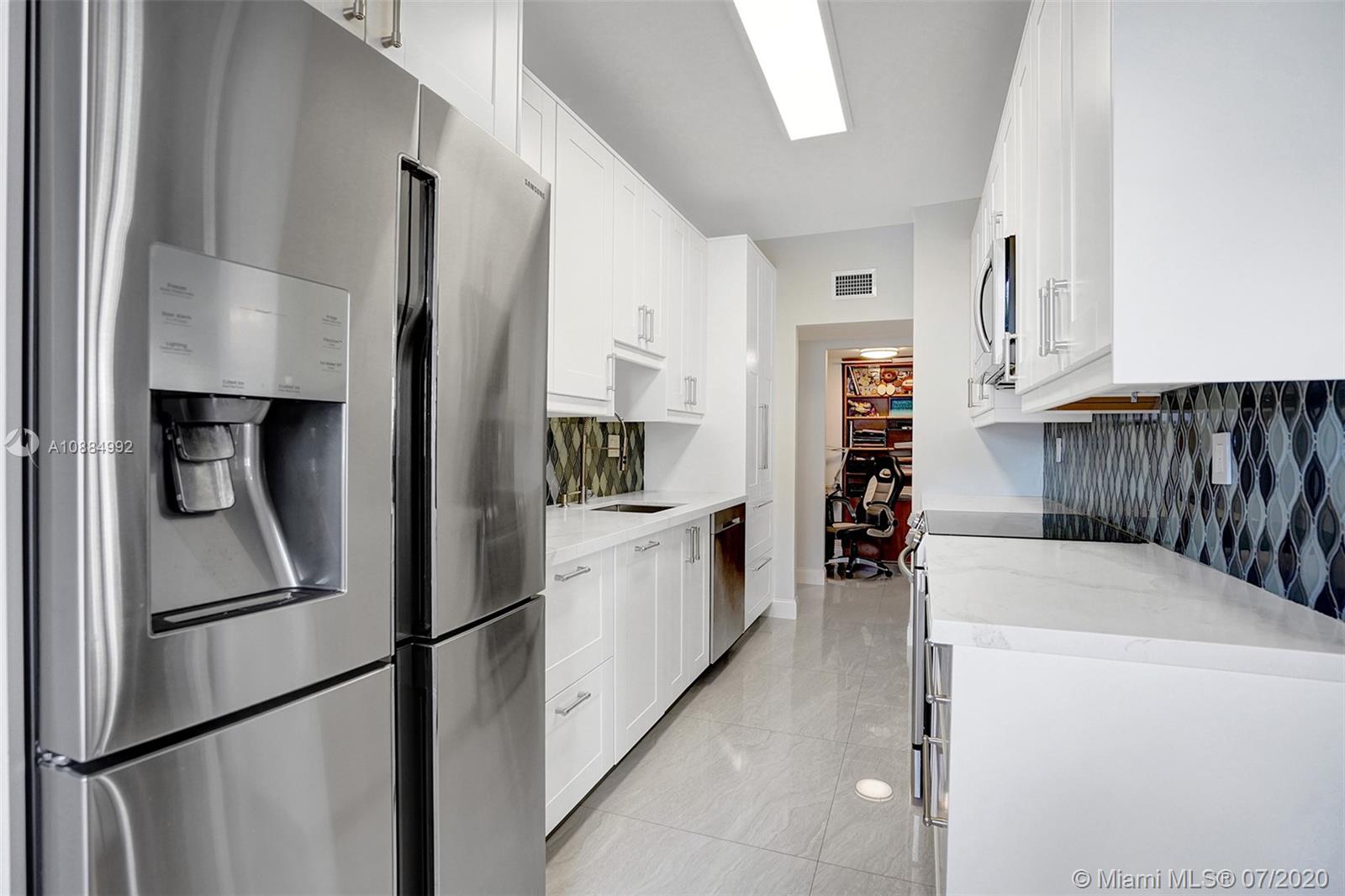 Spectacular light-filled corner unit with WATER VIEWS from every window! This 3 bedroom, 3 full bathroom unit has 9' high ceilings and an expansive floor plan with PORCELAIN tile and wood floors, a newly renovated kitchen with soft-close shaker-style cabinets, QUARTZ countertops, Samsung STAINLESS STEEL appliances, an office nook, lots of closets and huge WALK-IN CLOSETS with custom cabinetry, NEWER A/C, and a split-bedroom floor plan for the utmost privacy for your guests. A private park in front of the unit makes this unit a peaceful retreat and gives it a homey feel, unlike any other condo. LOW HOA fees! IDEAL LOCATION - 10 min walk(or take shuttle) to Sunny Isles Beach, 10 min drive to Aventura mall, close to Gulfstream!