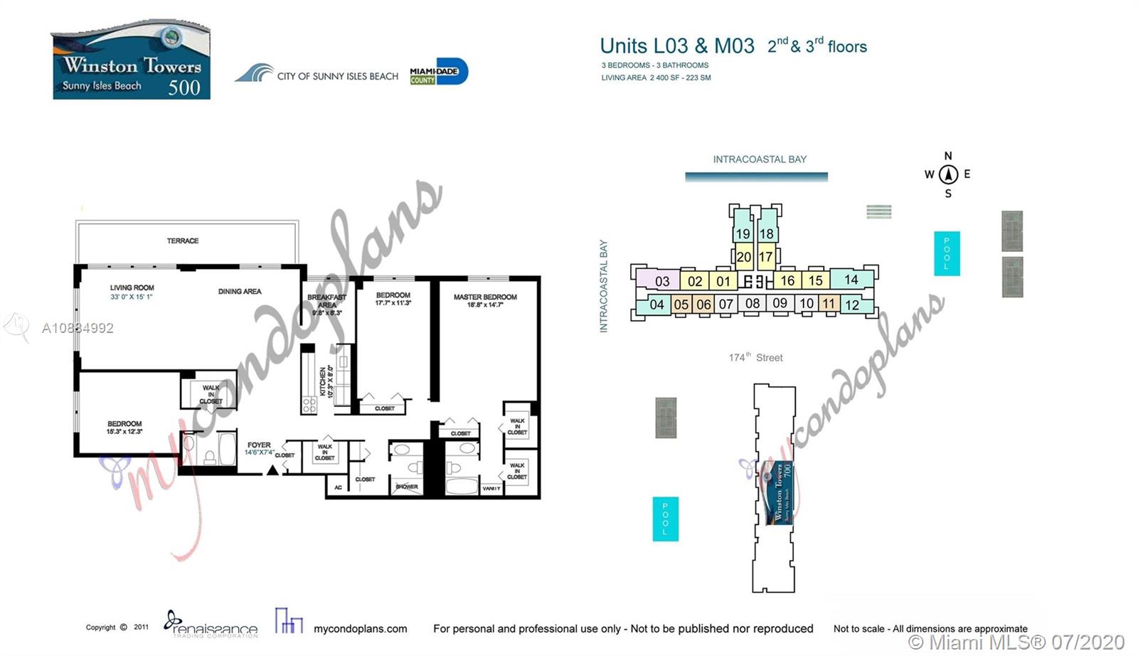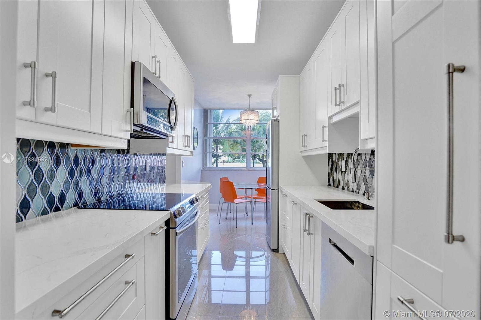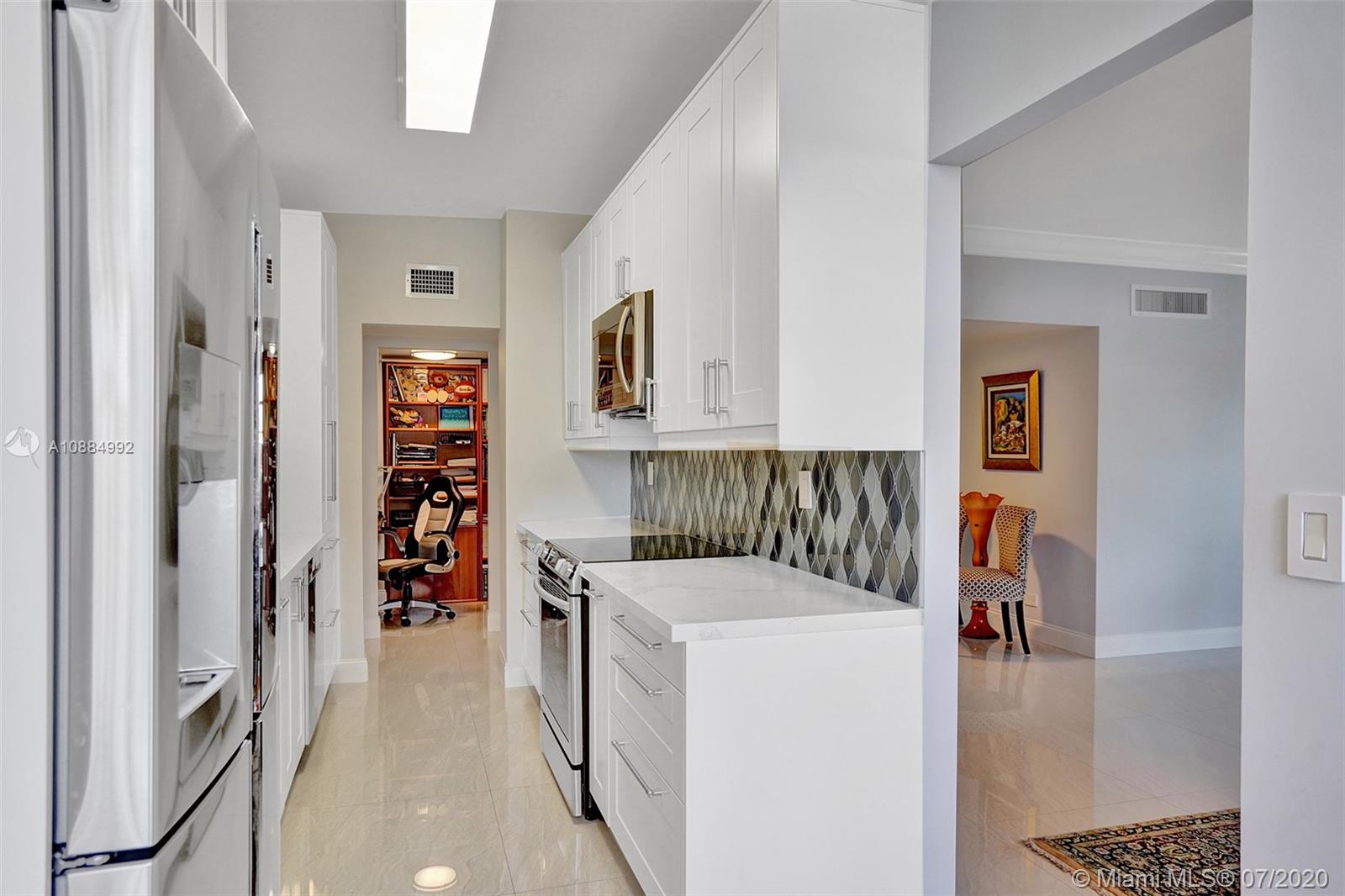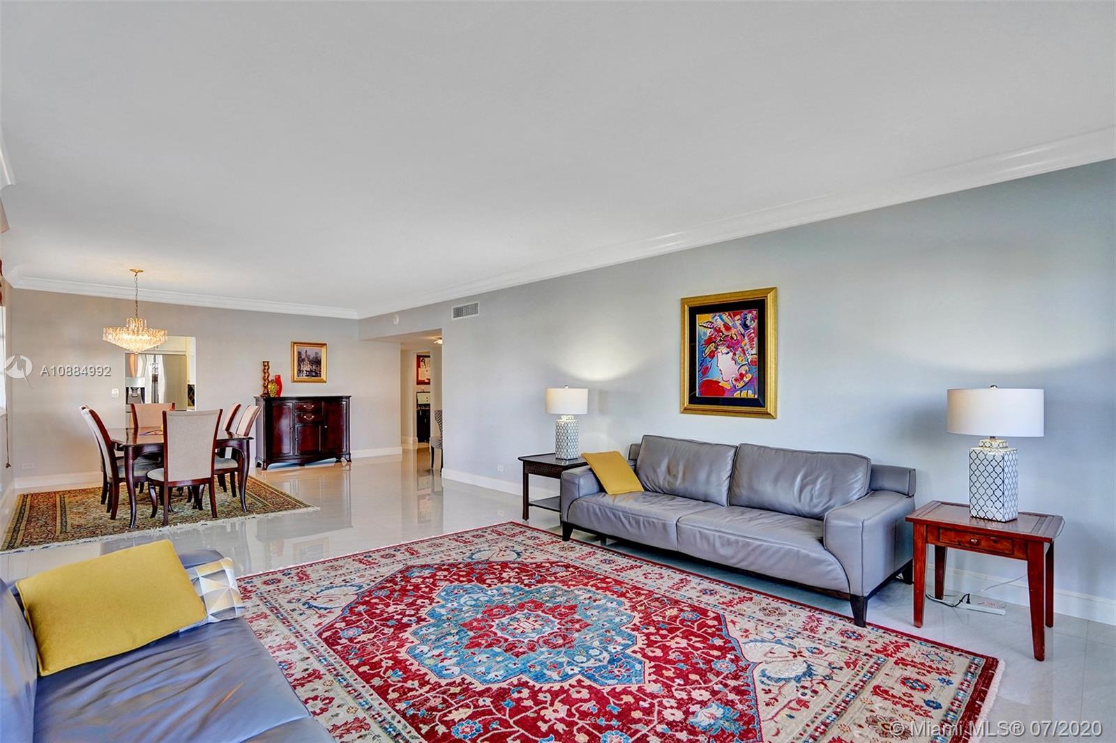 Spectacular light-filled corner unit with WATER VIEWS from every window! This 3 bedroom, 3 full bathroom unit has 9' high ceilings and an expansive floor plan with PORCELAIN tile and wood floors, a newly renovated kitchen with soft-close shaker-style cabinets, QUARTZ countertops, Samsung STAINLESS STEEL appliances, an office nook, lots of closets and huge WALK-IN CLOSETS with custom cabinetry, NEWER A/C, and a split-bedroom floor plan for the utmost privacy for your guests. A private park in front of the unit makes this unit a peaceful retreat and gives it a homey feel, unlike any other condo. LOW HOA fees! IDEAL LOCATION - 10 min walk(or take shuttle) to Sunny Isles Beach, 10 min drive to Aventura mall, close to Gulfstream!