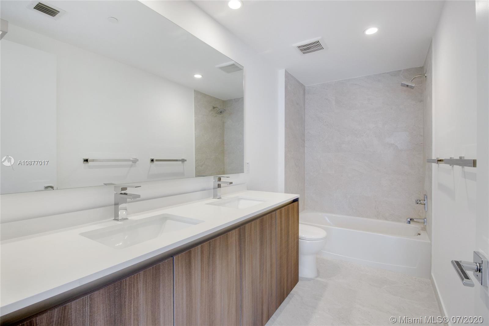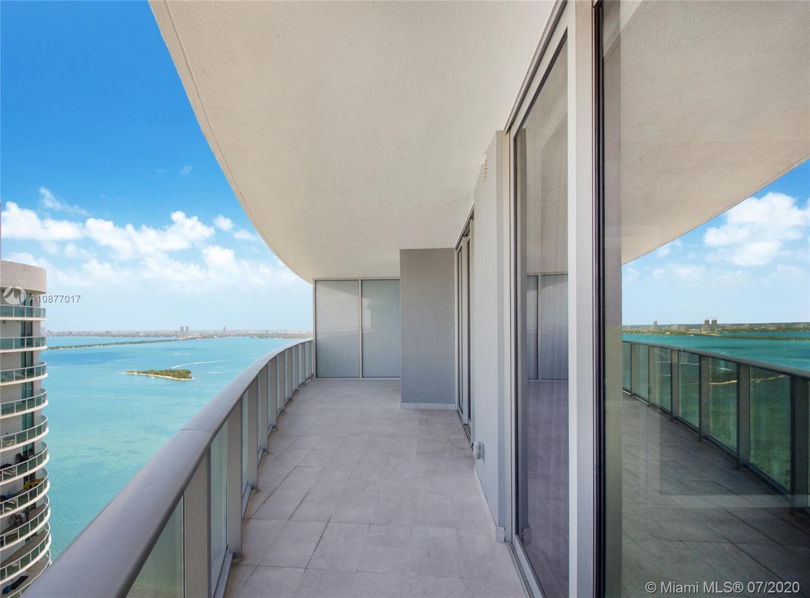 Spacious and functional split floor plan, 2 bedroom plus Den (convertible) with 3 full baths featuring partial views of the Bay and the sunset, built with porcelain flooring, Quartz counters and stainless steel appliances in kitchens. Come live the lifestyle at the Miami's most desirable neighborhood-Edgewater, in the city's latest and most desirable luxury waterfront building in front of the Margaret Pace Park. Five-star resort style amenities include sunrise and sunset heated pools, hot tub overlooking Biscayne Bay, BBQ, spa, sauna, steam room, resident's lounge with a private party room, business center, fitness center, yoga and pilates studio, movie theater, kids playroom and more.