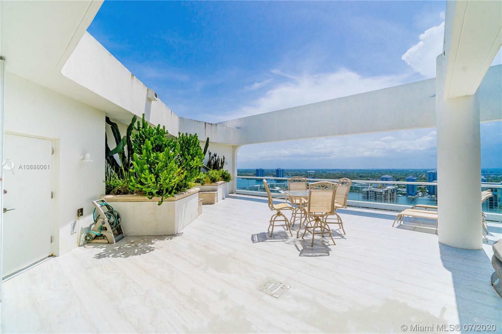 Spectacular wide views of the intracoastal, ocean & city views from this 2 story penthouse in the sky! Highly desirable 4280 sf of bright & open concept living with floor-to-ceiling glass for east to west views + an amazing open roof-top terrace ideal for entertaining. Circular staircase leads to first level featuring a grand master suite plus 3 more en-suite bedrooms all with access to a wide terrace for sunrise or sunset views. Pool cabana option at additional price. Williams Island 80+ acres includes a world class 27,000 sf spa, restaurants, a club pool, 16 tennis courts, marina, walk/jog path, kids playground, courtesy bus, dog park for a resort lifestyle.