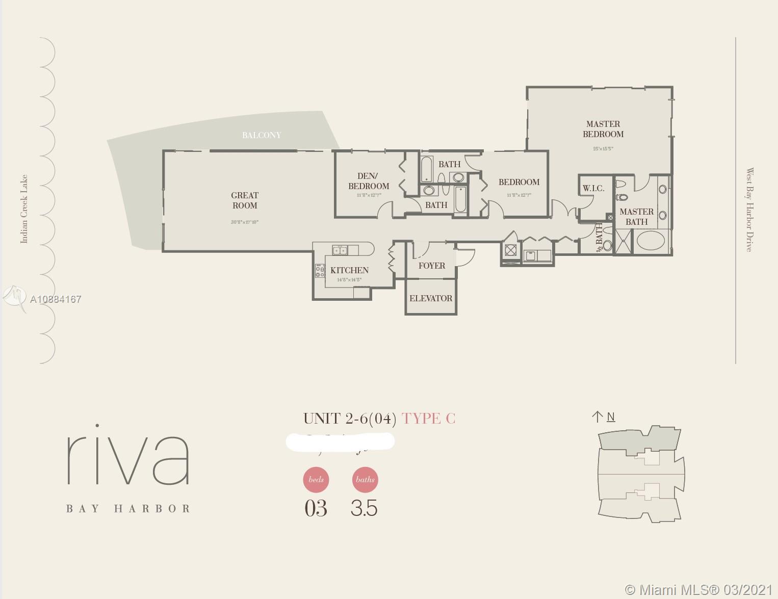 Upgraded flowthrough high-floor corner unit at Riva Bay Harbor, a 25-unit boutique waterfront building, completed in 2013, less than a mile from the Bal Harbour Shops. Riva 604 overlooks Biscayne Bay with unobstructed north, west and east views. A private elevator foyer opens directly to this spacious 3 bed / 3.5 bath with two terraces. Reflections of light off the water highlight the Brazilian modern ambiance of interiors by Artefacto, featuring white quartz countertops and white porcelain floors throughout. Enjoy abundant storage closets and high-end appliances. Relax in your own peaceful oasis with full-time security, valet parking and front desk attendant. Catch the perfect sunrise, dip in the rooftop pool, or stroll through the quaint two-island town of Bay Harbor Islands.
