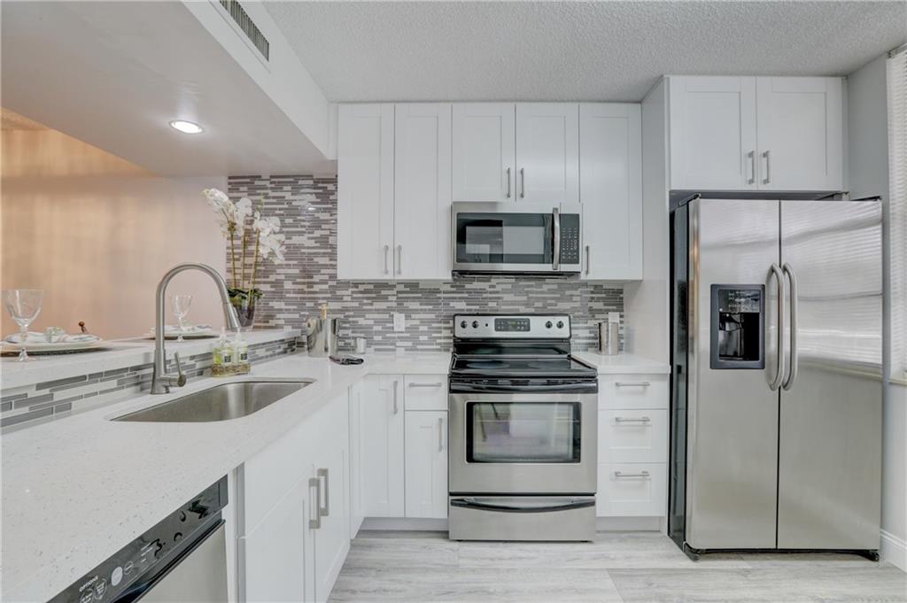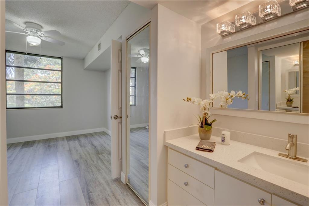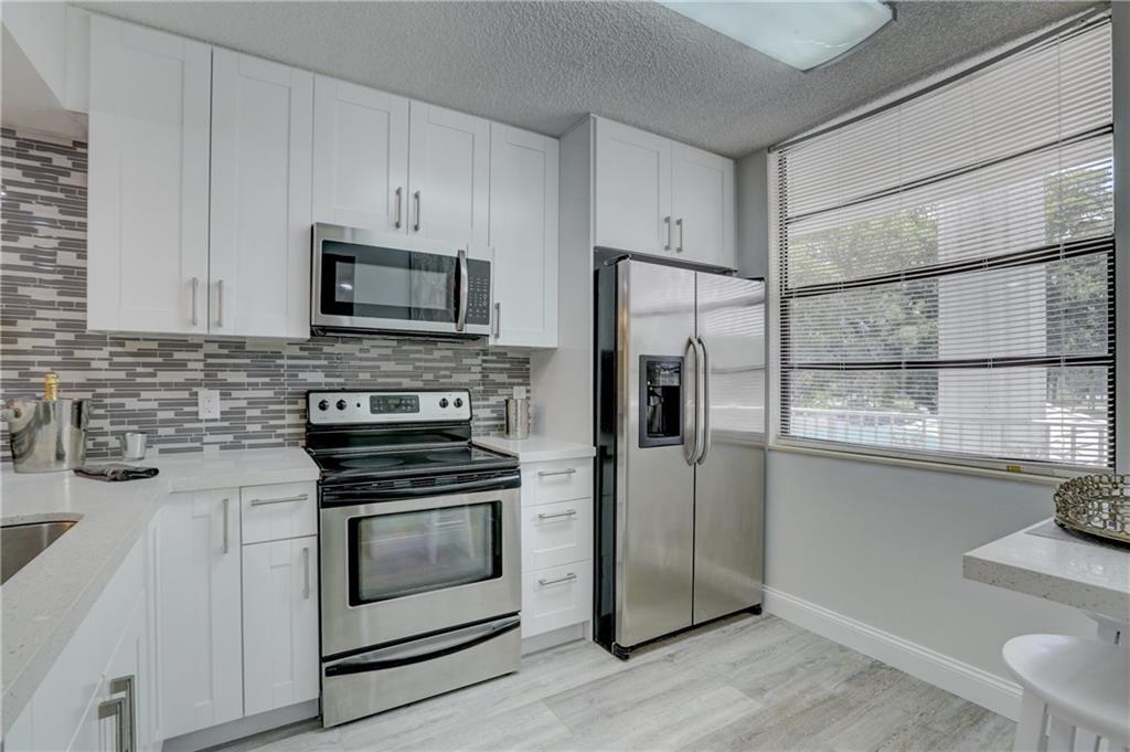 Gorgeous second floor unit with great views of the golf course. This completely remodeled 2/2 features open concept floor plan, brand new kitchen cabinetry, contemporary bathroom vanities, all topped with beautiful quartz countertops, a bonus room/small office or den with full washer, dryer and new laundry cabinetry, water resistant luxury wood-like vinyl flooring, and new tile flooring, New air conditioner unit with 10 yr warrantee. Other amenities include access to the community pool, membership to Pine Island Ridge Country Club and access to the best schools in Broward County! Basic cable, water, trash, common area, building exterior included in Association fee. Close to the highways, shopping, dinning and Fort lauderdale airport. Investors welcomed, no rental restrictions.