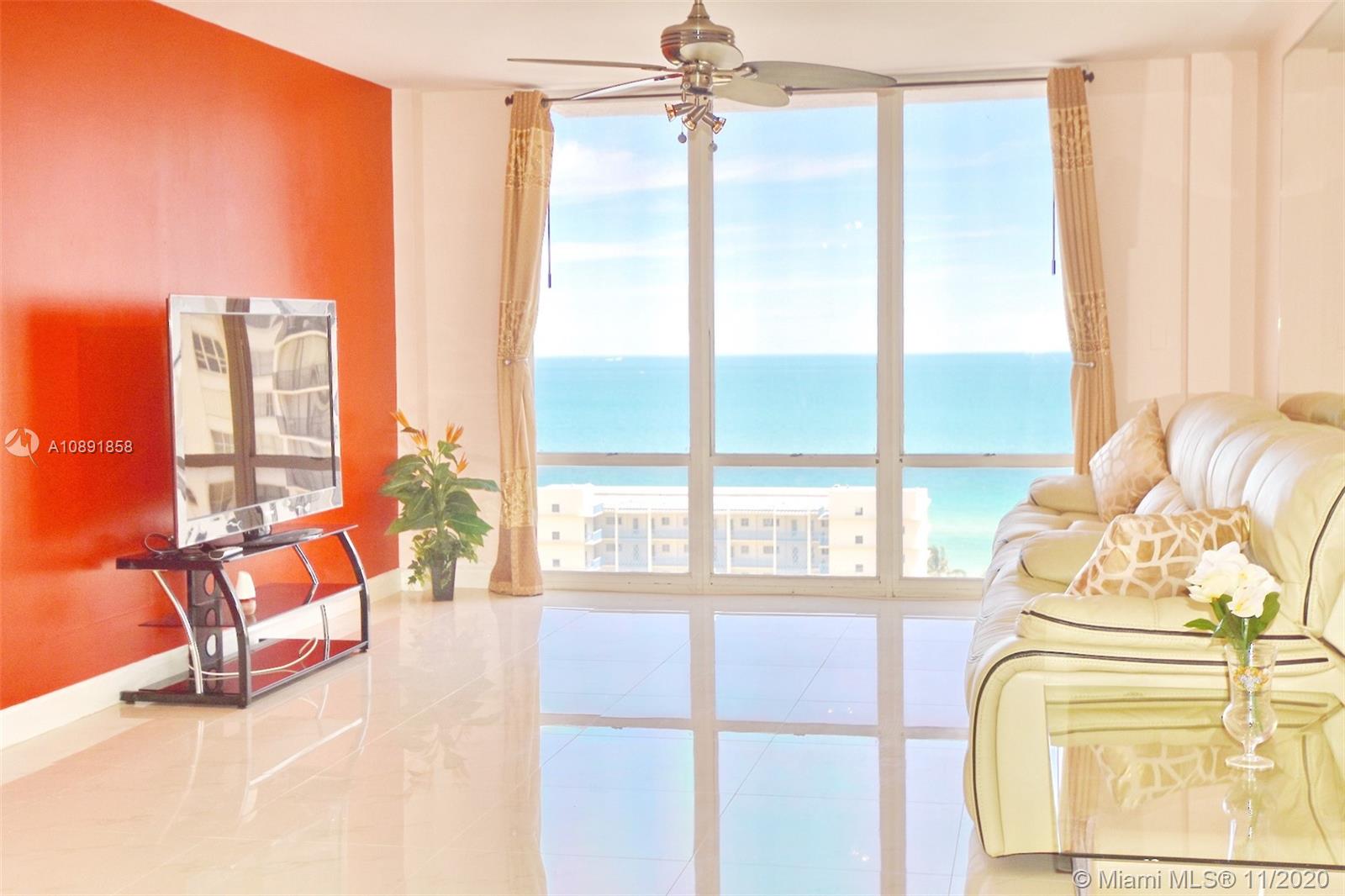 Excellent condition large size apartment with direct Oceanview from each room on 17th floor. Updated eat-in kitchen, 2 bedrooms with two large size bathrooms. Porcelain floor. Covered parking. ?Great amenities! Steps to the beach. Large balcony with an Oceanview. A lot of closets We sell it Fully furnished
