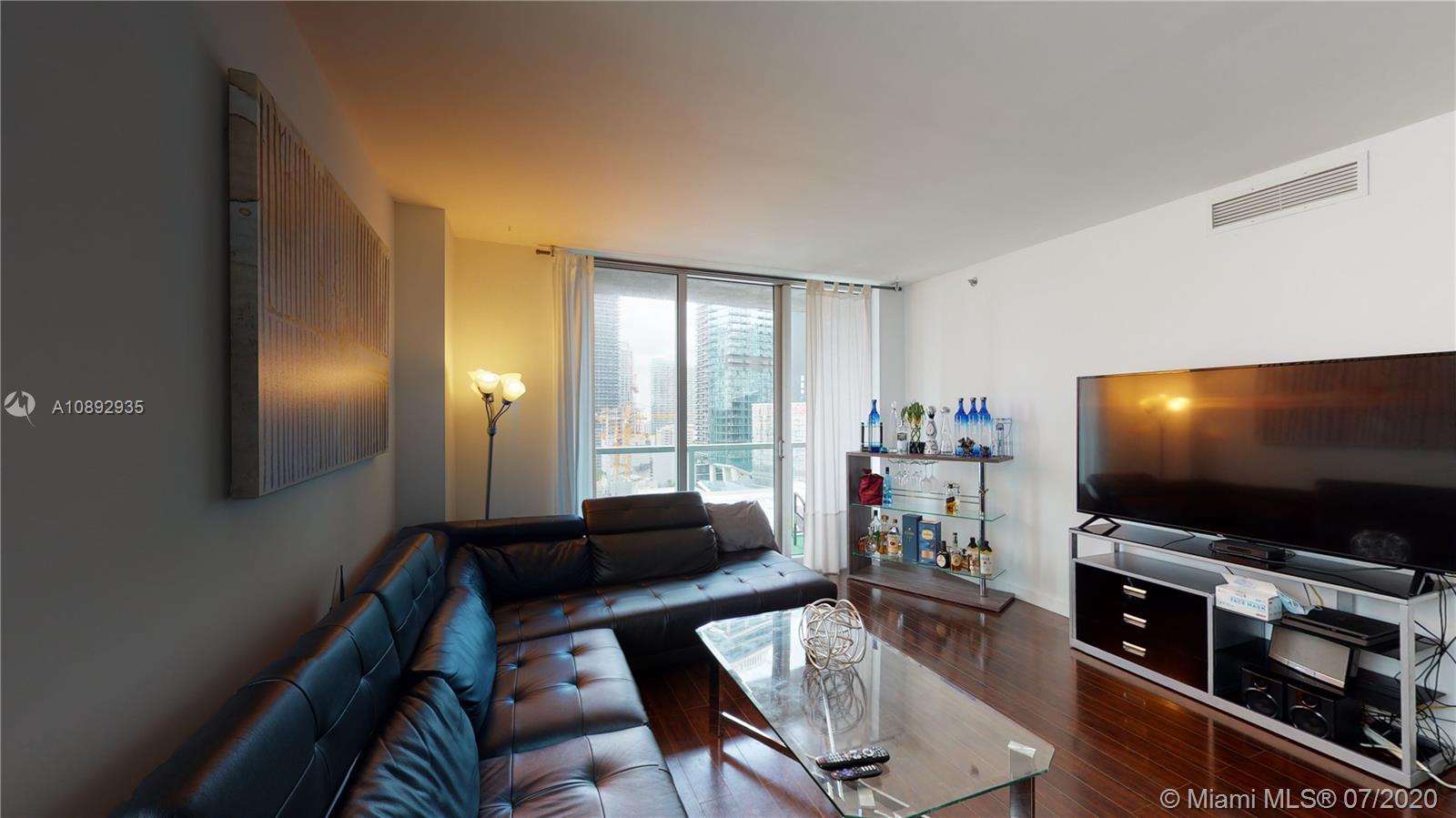 BEST PRICED SPECTACULAR CORNER UNIT! Spacious bedrooms, Wood floors, modern open kitchen with stainless-steel appliances, custom closets. Enjoy beautiful views of Miami River and downtown skyline. Minimum lease term is 30 days- a great option for investors. Centrally located walking distance to the people mover, Brickell financial center, restaurants, Downtown, Marry Brickell Village, the metro mover, and the new Brickell City Center. Minutes away from the New Performant Arts Center, Bayside, and the American Airlines Arena. Enjoy world-class amenities, two swimming pools - including a rooftop pool and sundeck on the 42nd floor, and a swimming pool with poolside cabanas on the 11th floor; concierge 24/7, valet parking, spa, state of the Art Gym, Theater, and a party room; among others.
