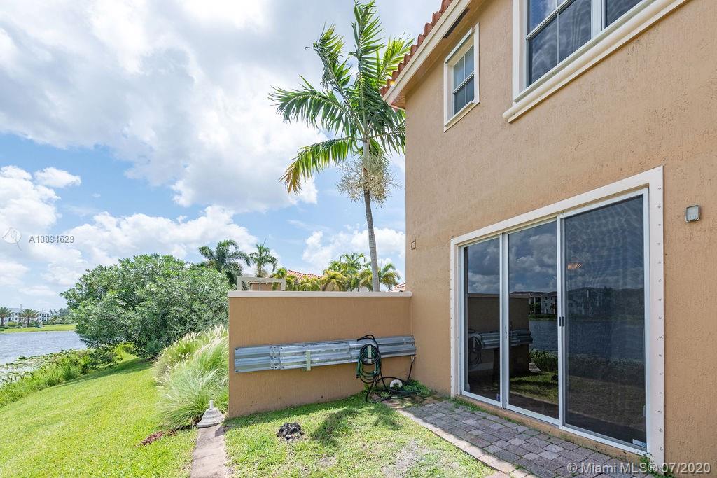 Beautiful 3 bed 2.5 bath townhouse style condo in Pembroke Pines! Centrally located to restaurants, grocery stores, the highway, malls, and good schools. Tile flooring is located throughout the entire first floor with a laminate wood staircase continued into the bedrooms upstairs; all flooring was replaced within the past 5 years. The kitchen is spacious and has been upgraded with granite counters and features a large cooking island. Right off the kitchen and dining room is a sliding door with stunning views of the lake while you enjoy your meals. Not only is this corner unit waterfront, it is located right next to the pool and spa. This home has two parking spaces directly in front and a bonus guest spot for any of your visitors. Fully hurricane protected with panel shutters.