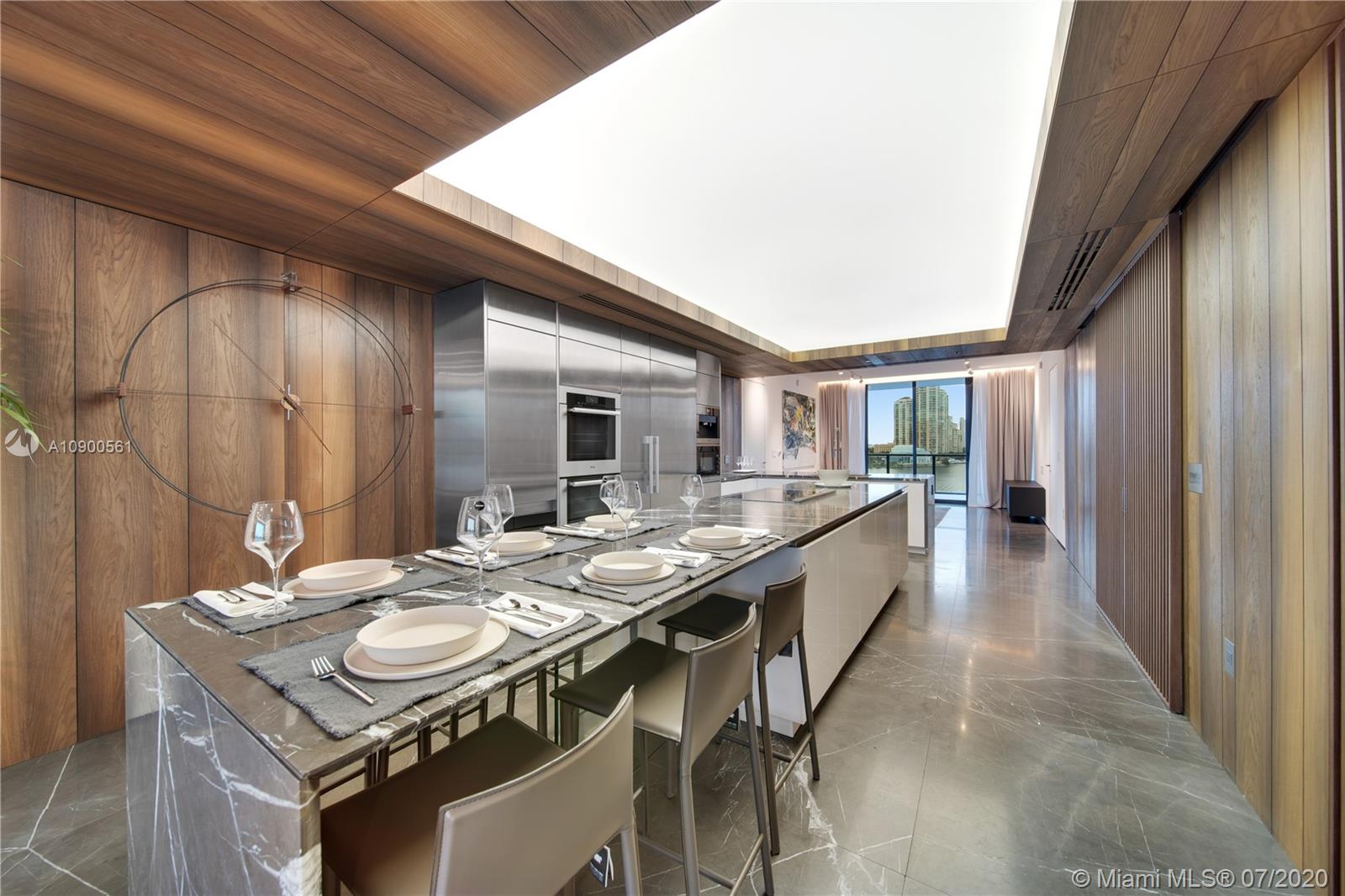 Explore this impressive, turnkey unit at Prive Aventura. Three bedrooms + four-bath + maids quarters with bathroom attached + powder room. Finest Italian furniture and finishes: imported Italian furniture, Rimadesio doors, Italian closets, custom made Italian panels - just to name a few. Rare Italian marble throughout the unit and wood flooring in the bedrooms. Many upgrades: improved kitchen with Miele appliances, all AC ducts upgraded to linear diffusers, dropped ceilings with LED lighting, blackouts, and custom window treatments throughout the unit. Don't forget to check out the virtual Video Tour. Call now to schedule a showing!