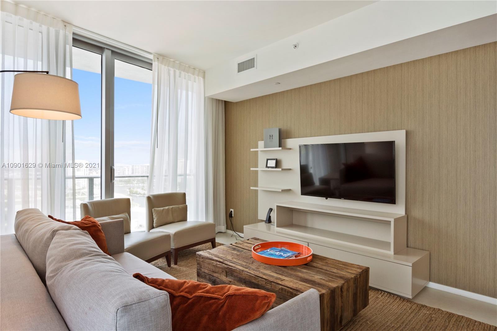 Right on the beach, CORNER UNIT with ocean and city views, wrap around balcony, fully furnished and decorated, spacious floor plan, washer and dryer, plenty of closet space plus owner's closet that can be kept locked while renting. High demand for short term rentals at AIRBNB. Sophisticated condo hotel and resort. Beautiful and convenient amenities including a restaurant, cafe, pool, spa, gym, store, beauty salon and beach service. This unit can be rented by owner with no restrictions or included in the hotel program. More details provided upon request.