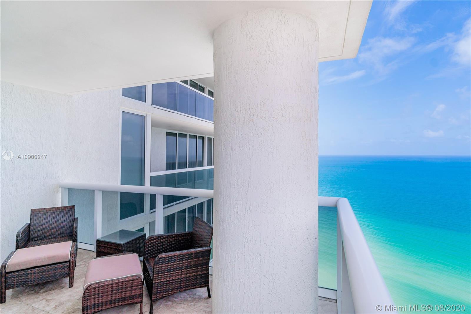 No expense spared in this luxurious residence. One of a kind elegant unit offers spectacular direct views of the ocean and intracoastal waterway. Walls of glass lead to the large wrap-around balcony. Custom kitchen boasts of top of the line Miele appliances, marble countertops and cabinets imported from Italy. Marble flooring throughout, as well as magnificent textured finishes on the walls. Specialty accent lighting in every room, thermostat, speakers, etc. all controlled by your smart phone/tablet. Bathrooms are updated w/ European vanities, led mirrors and more elegant lighting. Black tempered glass interior doors in every room. Too much to describe. 5 star amenities include private beach svc, poolside bar, 3 pools, 28,000 sq ft fitness center w/ oceanview, 24Hr valet and security.