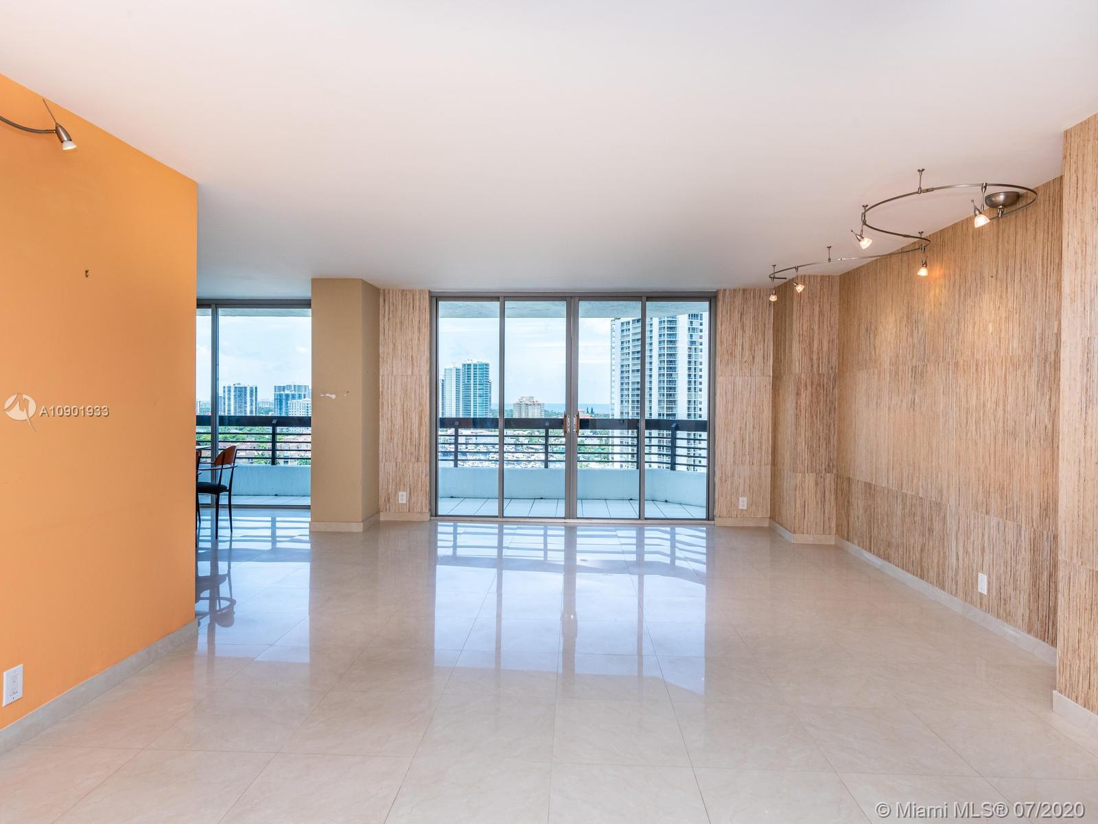 Make Mystic Pointe your home! Split bedroom floor plan featuring 2 bedrooms, 2 bathrooms. Enjoy stunning urban views of the Aventura skyline and the Intracoastal from a high floor and expansive balcony. Unit features marble flooring throughout. Master suite with walk in closet features custom made cabinetry, upgraded bathroom cabinetry with extra storage, tempered glass shower doors and Jacuzzi. Master bedroom equipped with remote control electric shades. 2 extra storage spaces offered with the sale of the unit. Mystic Pointe is a 5-star community featuring tennis courts, restaurants, Fitness center, pool and walking distance to world renowned Aventura Mall and the Aventura Circle "Don Soffer Excercise Trail." EASY TO SHOW!