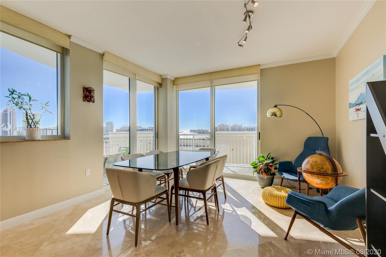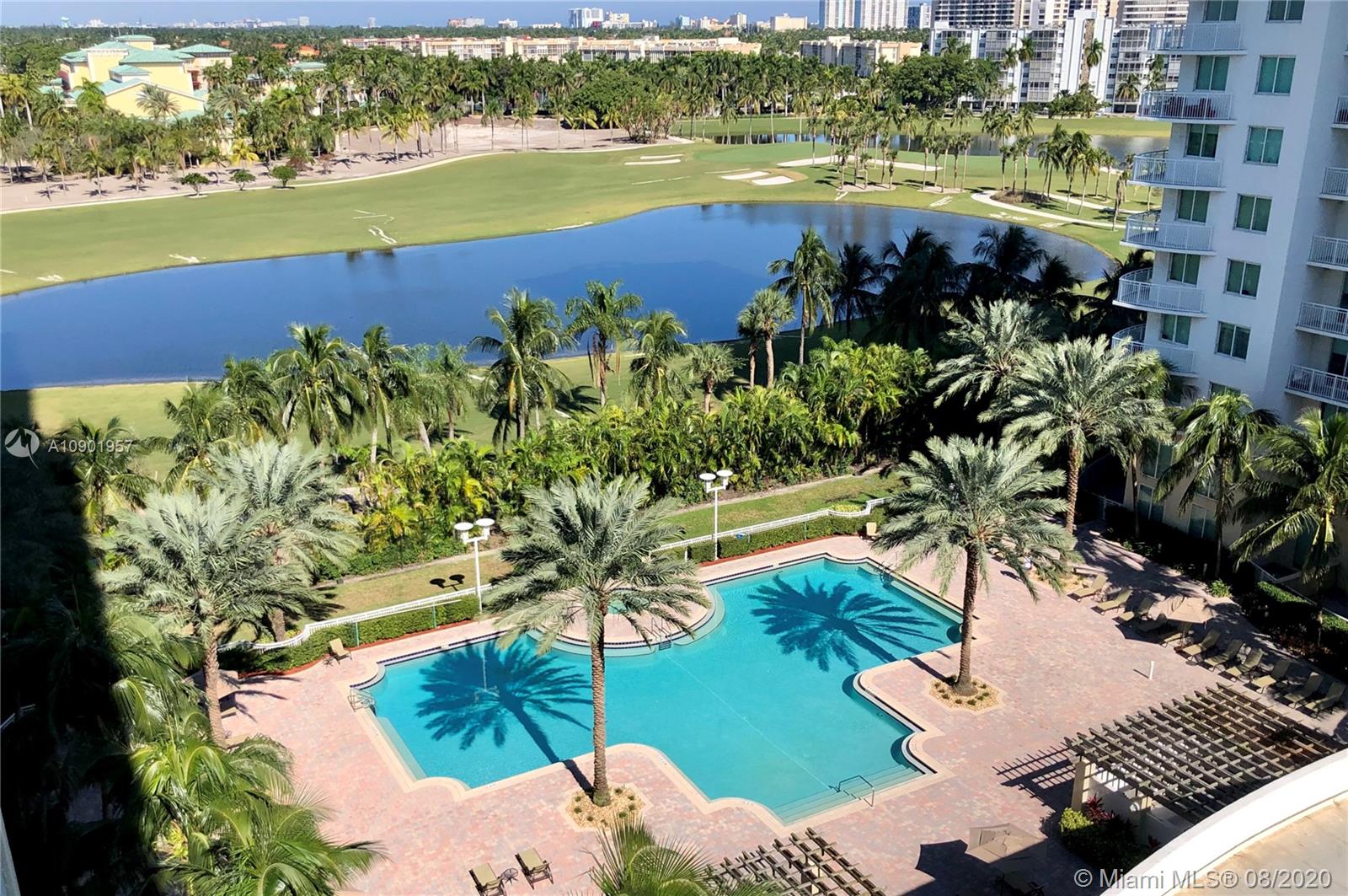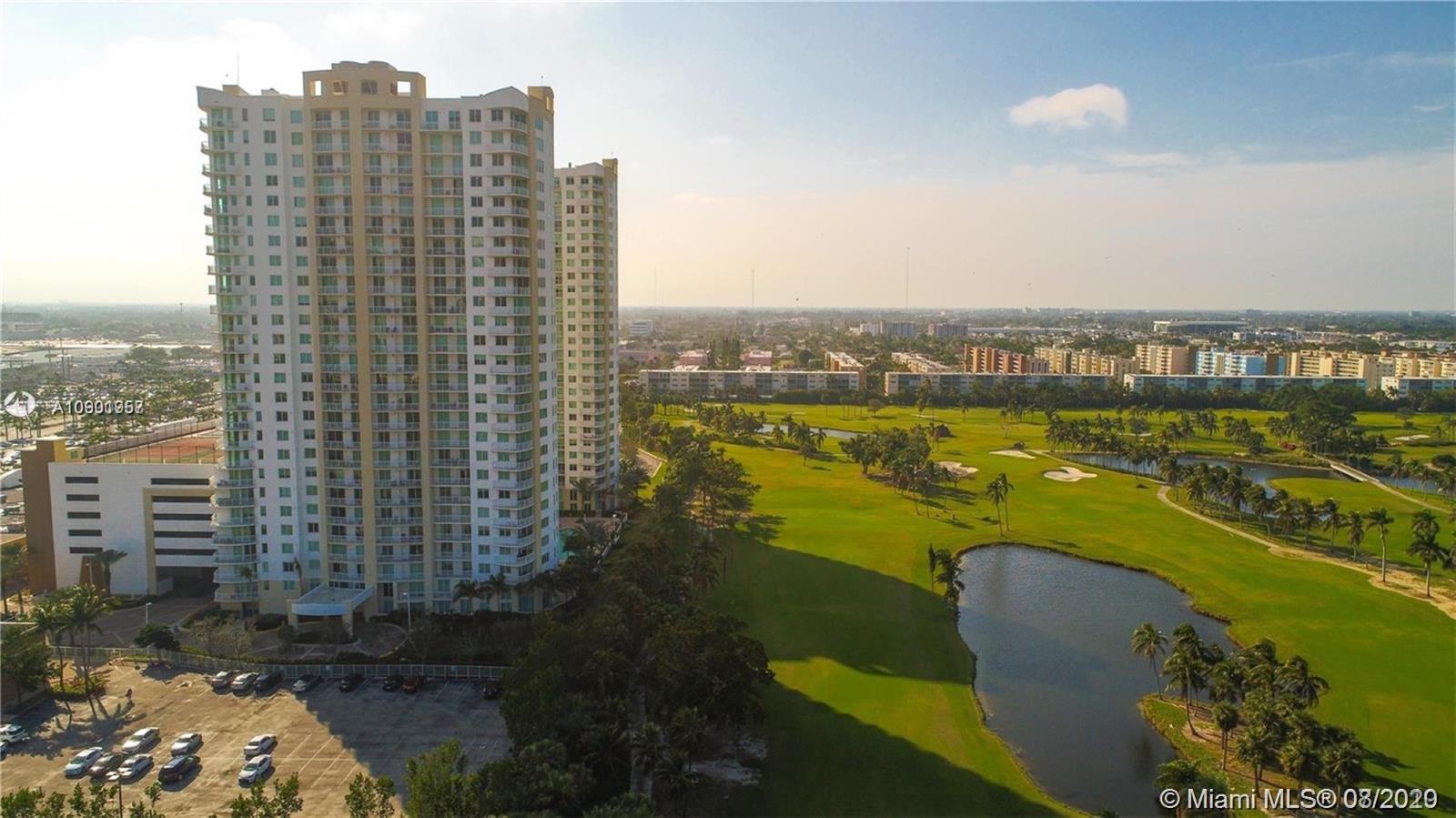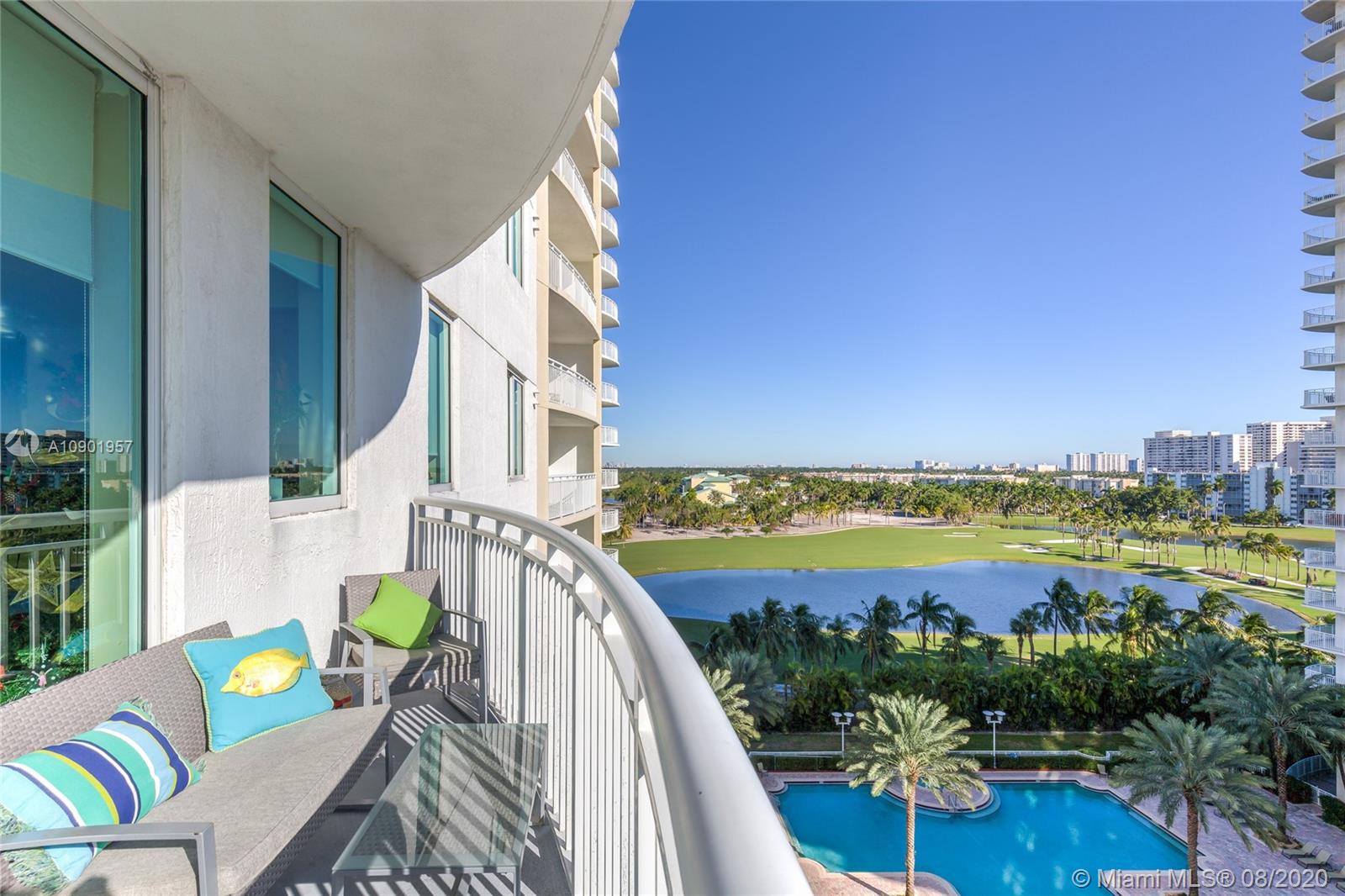 Largest spacious bright corner 2/2 with wraparound balcony & open kitchen. Golf Course, Pool, Sunset and Sunrise ocean views, has 2 deeded ASSIGNED parking spaces. Large master bathroom with Jacuzzi style bath and separate shower cabin, floor to ceiling impact proof windows , LED ceiling lightning with dimmers, brand new stainless steel appliances, washer and dryer with steam, NEST learning thermostat, new double shades in the master bedroom, 7 stages RO water filtration system ,granite counter tops in the kitchen. A lot of storage space inside the unit. 24 hr. security, valet parking, business center, tennis, spa & fitness center, jogging path, dog park, heated pool, and a billiard & party room. Best location too! Walk to the beach, Starbucks, Panera Bread, Gulfstream Park, etc.