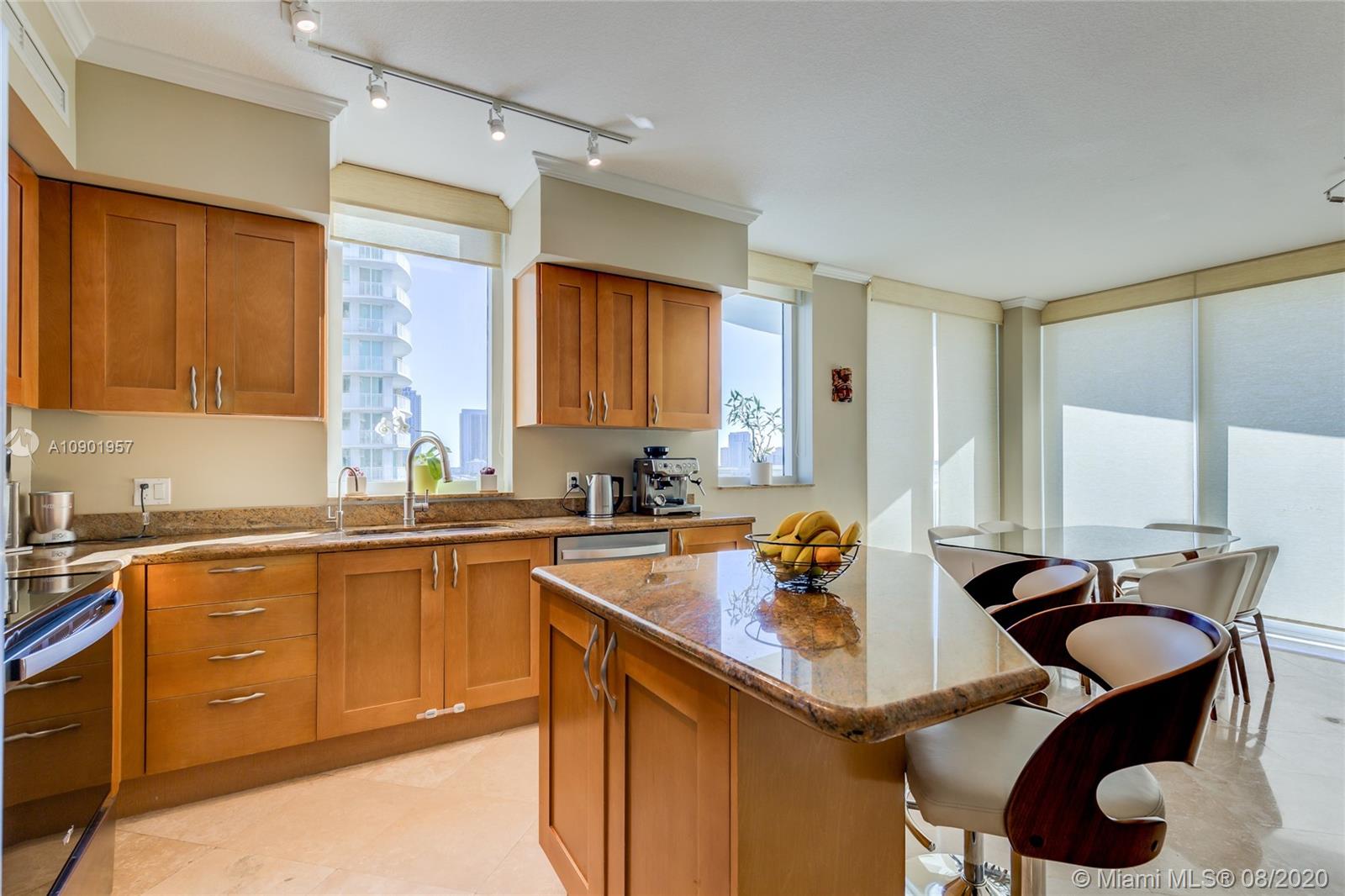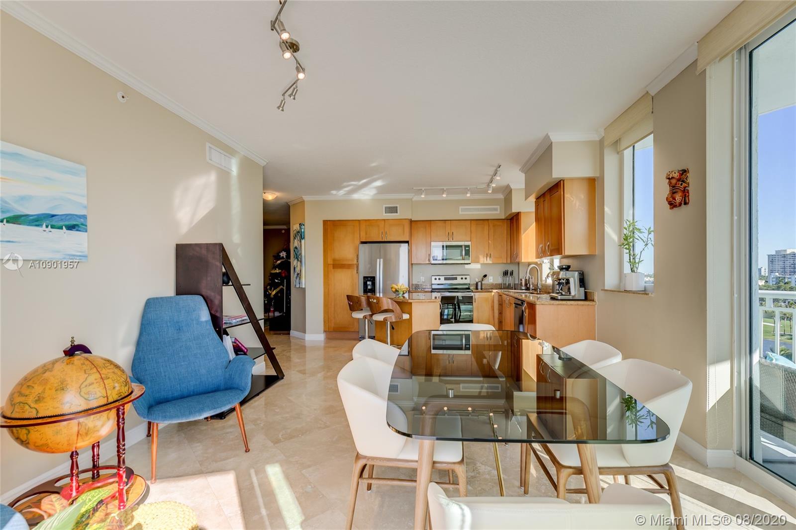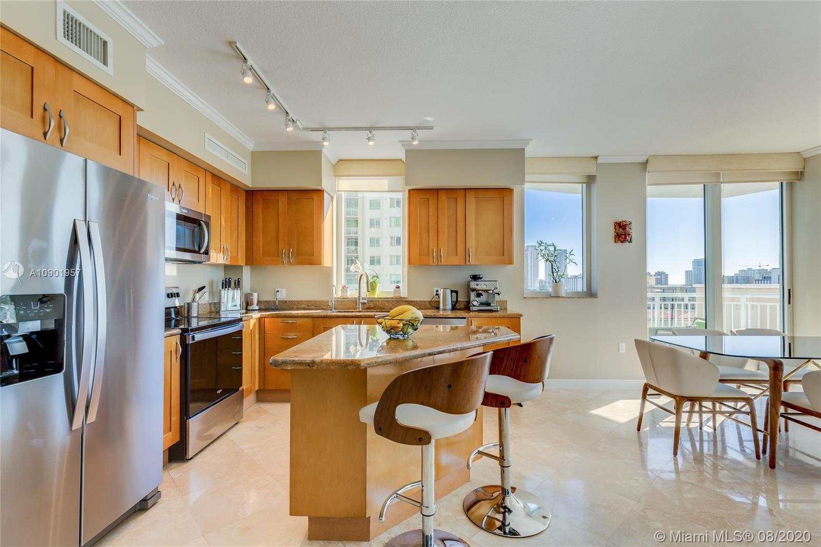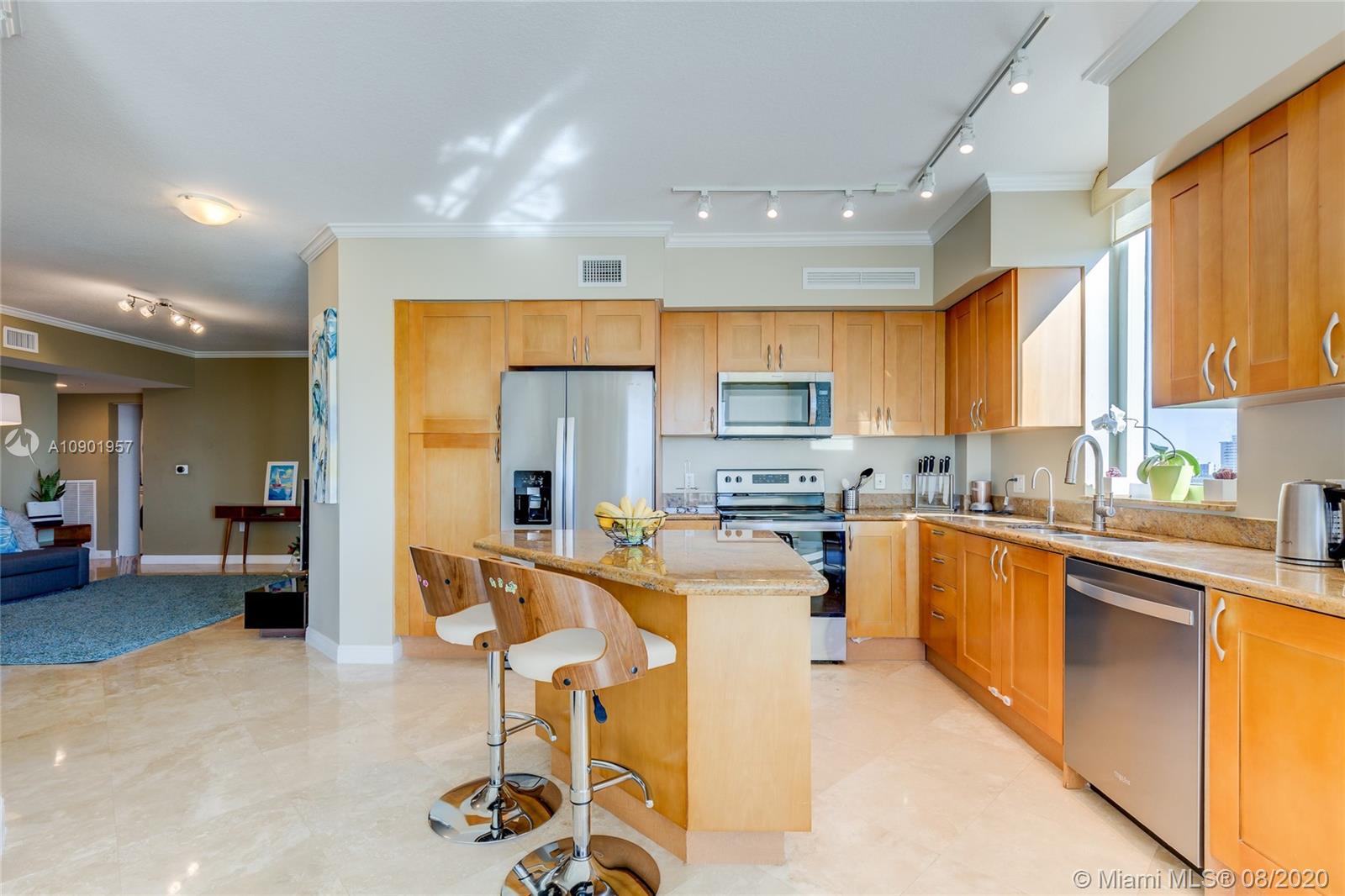 Largest spacious bright corner 2/2 with wraparound balcony & open kitchen. Golf Course, Pool, Sunset and Sunrise ocean views, has 2 deeded ASSIGNED parking spaces. Large master bathroom with Jacuzzi style bath and separate shower cabin, floor to ceiling impact proof windows , LED ceiling lightning with dimmers, brand new stainless steel appliances, washer and dryer with steam, NEST learning thermostat, new double shades in the master bedroom, 7 stages RO water filtration system ,granite counter tops in the kitchen. A lot of storage space inside the unit. 24 hr. security, valet parking, business center, tennis, spa & fitness center, jogging path, dog park, heated pool, and a billiard & party room. Best location too! Walk to the beach, Starbucks, Panera Bread, Gulfstream Park, etc.