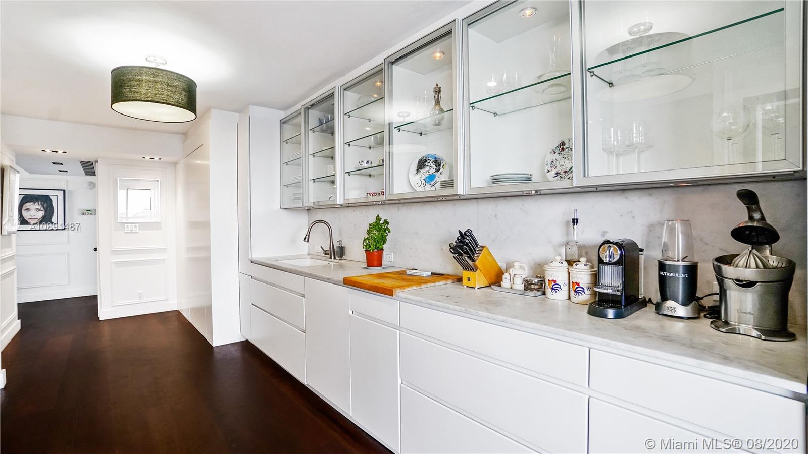 This One-Of-A Kind Spectacular residence is immaculate and move-in ready. Appraised at 1.4 Million, the 2/2.5 NE corner unit can be easily converted back to a 3/2.5. Exquisite custom interiors are enhanced by amazing Bay and Downtown Miami Skyline views. Elegant foyer, spacious living and dining room. Modern custom Poggenpohl designer kitchen, Sub-Zero, Wolf & Gaggenau appliances, and stylish breakfast nook. Stunning, expansive Master Suite with oversized, custom walk-in closet and private balcony overlooking the Bay. The residence has raised ceilings, impeccable architectural details and Brazilian Cherry hardwood floors throughout, custom built-in cabinetry, Europhase LED Lighting, motorized shades and more. Ultimate Luxury Living on a Private Island with world class amenities and Marina