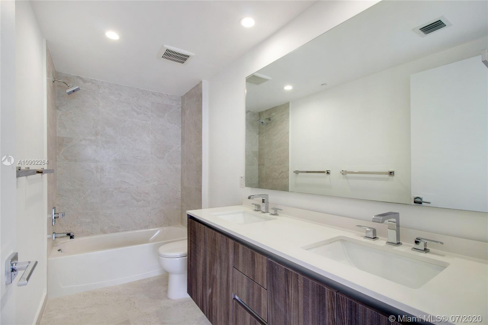 Private elevator, spacious and functional split floor plan, 2 bedroom plus Den (convertible) with 3 full baths featuring porcelain flooring, oversized walk-in closets, Quartz counters and stainless steel appliances in kitchens. Come live the lifestyle at the Miami's most desirable neighborhood-Edgewater, in the city's latest and most desirable luxury waterfront building in front of the Margaret Pace Park. Five-star resort style amenities include sunrise and sunset heated pools, hot tub overlooking Biscayne Bay, BBQ, spa, sauna, steam room, resident's lounge with a private party room, business center, fitness center, yoga and pilates studio, movie theater, kids playroom and more.