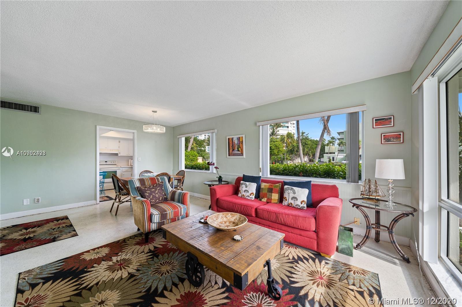 A rare opportunity! Spacious walk to the beach! Corner condo 1-story on ground floor Private pool. Everything included with all appliances, building laundry room steps away from condo. Private parking plus guest spaces. Short term rentals permitted. BBQ area near pool. Freshly painted building. Assessment paid by seller. Condo fee $490/month covers everything except electric. (Also available for rent and short term rent)