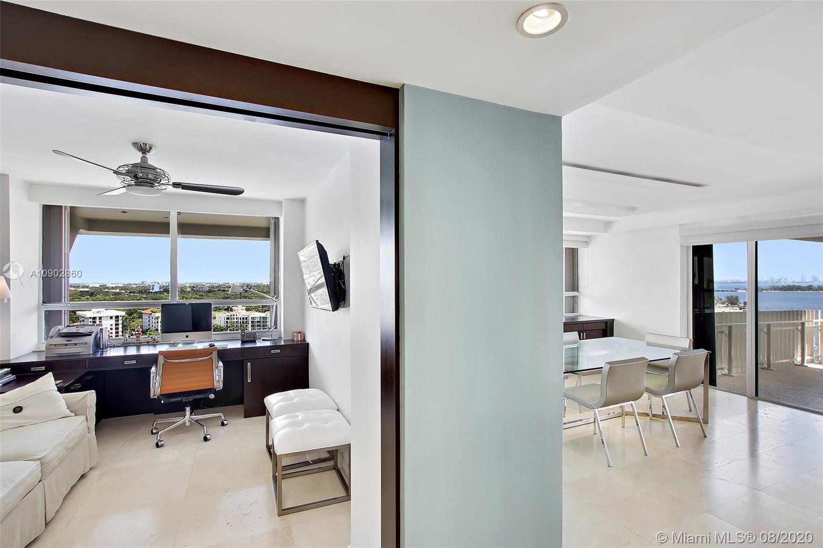 Spectacular views of the Miami Skyline, Coconut Grove, Key Biscayne and Miami Beach. Huge corner 3-bedroom, 2.5-bath offers an enormous living area with floor-to-ceiling hurricane impact glass doors and windows opening to your spacious balcony. Fully renovated and upgraded with marble floors, exquisite tile work and custom woodwork throughout. Entertain in your renovated kitchen that is equipped stainless steel appliances, dual wall ovens and an eat-in bar. Additional features include; designer lighting and ceilings, a den/office/4th bedroom off the kitchen with sunset and marina views, separate dining area with balcony access and closets galore. Relax in your expansive master suite with huge walk-in closet and en suite bath with Jacuzzi, glass shower, dual vanities and private balcony.