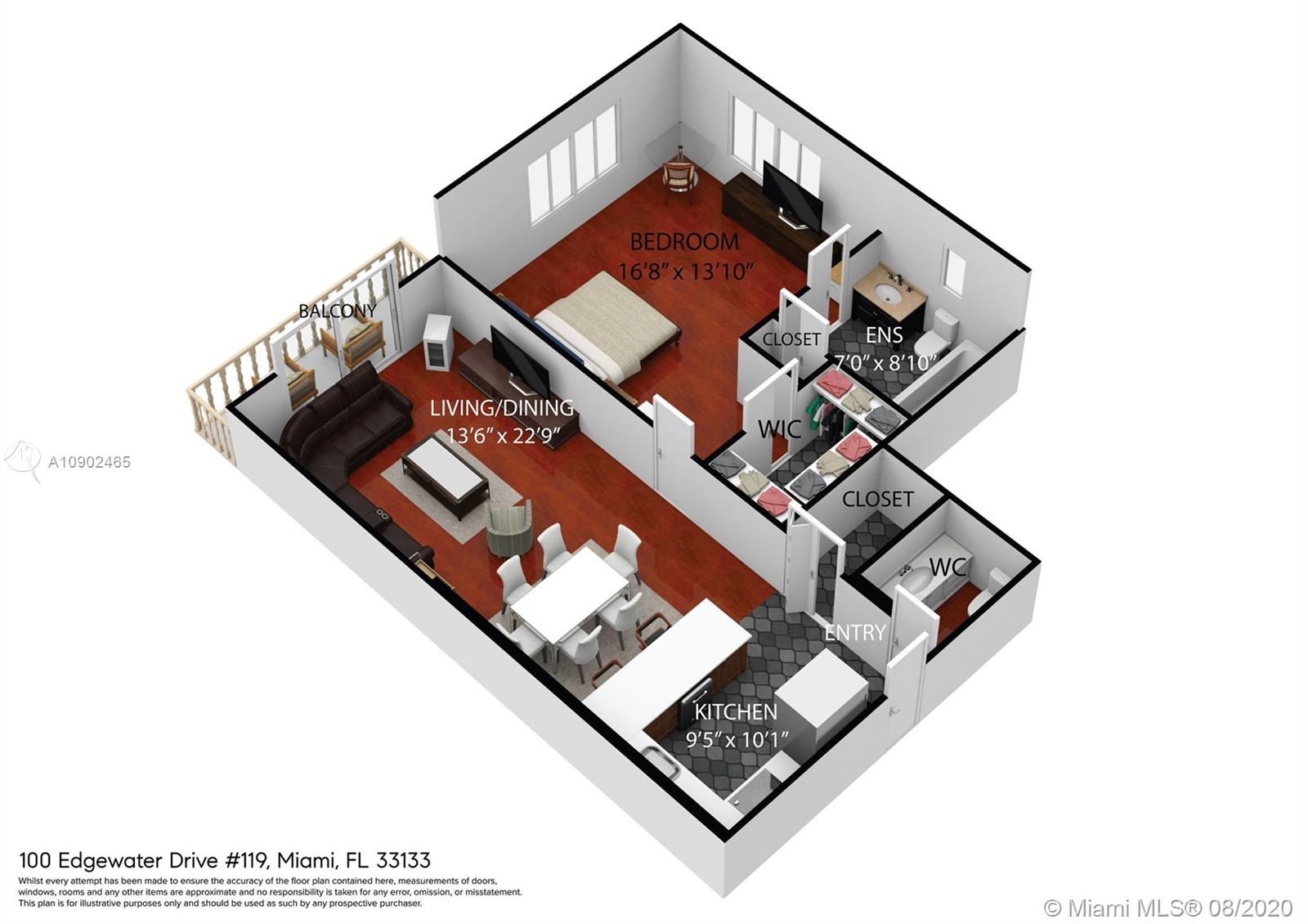 REDUCED! Waterfront Condo! Completely Remodeled! New Kitchen with Stainless Steel Appliances, Hardwood Floors throughout, New Bathrooms! Overlooking the Coral Gables Waterway, Boat Dock & Pool. 1 bed / 2 bath (888 sqft) condo is a gem! Large Walk-in Closets, tons of storage! Located on the first floor, this Condo feels like a house! Parking is steps to the condo. You can be "Socially Distanced" and go directly from the car to your condo without using elevators or seeing neighbors. Low Maintenance! Charming building on Exclusive Edgewater Drive in the heart of Coral Gables. Check out our virtual tour for a walkthrough of the property! Easy to Show!