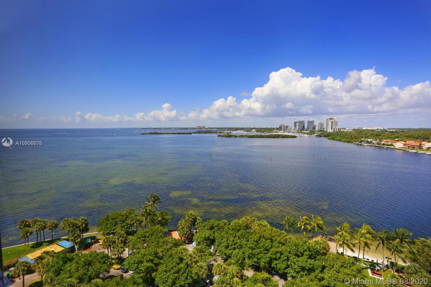 Enjoy unobstructed views of Biscayne Bay and the Grove skyline from this 15th floor residence. Light-filled living spaces open to covered balcony, ideal for enjoying the bay breezes. Updates include travertine flooring & custom built-ins throughout. Stunning kitchen feature European-style cabinetry, quartz countertops & top-of-the-line appliances including wine storage. Large master suite with walk-in closet & luxurious bath w/ soaking tub and glass-enclosed shower. First-class building amenities include concierge, on-site restaurants, 14 Har-Tru tennis courts, marina, private beach, jogging path, spa, fitness center & heated pool. Just across the bridge from the Grove village center's galleries, boutiques and cafes. Minutes to downtown, MIA and the Beaches.