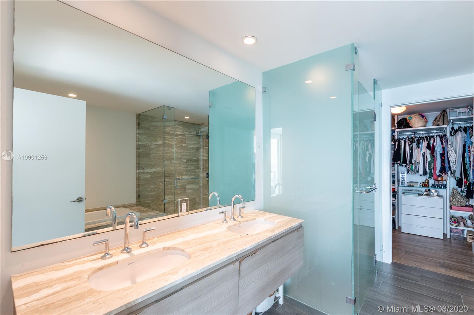 Stunning 3 bedroom + den, 4 bathroom corner unit situated at the luxurious Biscayne beach building in Edgewater. Enjoy breathtaking views of Biscayne Bay while being a step away from the most vibrant locations in Miami. This amazing unit has been designed by Luciana Bueno, featuring wood panels, woodwork, electric shades, porcelain floor imitating wood, top of line appliances and staggering finishes throughout. Full of natural light this high ceiling unit has 2 parking spaces. Delight yourself in luxury amenities, which includes full service beach club pool, 2 pools, vallet parking, concierge, beach cabanas and lounge areas, fitness club and spa, 2 tennis court, basketball court, party room, bbq area and great room with library, theater and pool tables.