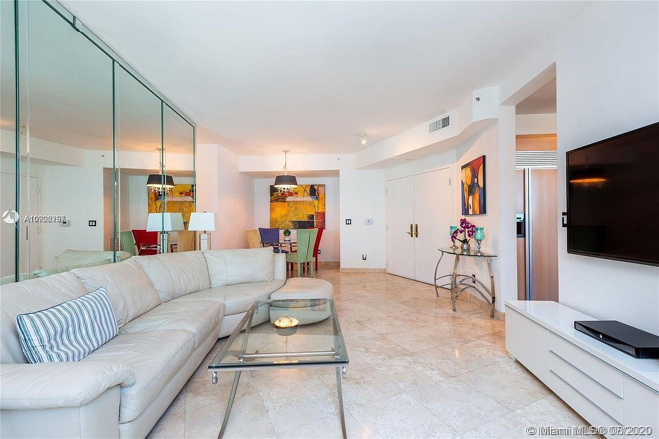 Fantastic opportunity to live in one of Miami Beach's most iconic buildings. Walk to the beach, eat at some of Miami's best restaurants, and go to the grocery store without ever moving your car! This is the best priced and largest one bedroom, one and a half bath unit in the entire building. Marble floors though out, kitchen with new appliances, granite countertops with an island. Dual sinks in master bath, granite counter tops and whirlpool spa. Oversized half bath for guests. This unit simply needs your own personal touch and it will be a show stopper. The unit comes with one parking space plus valet, the building features security, concierge, pool, spa, sauna and luxury gym on the 29th floor. Come experince resort living south of fifth!