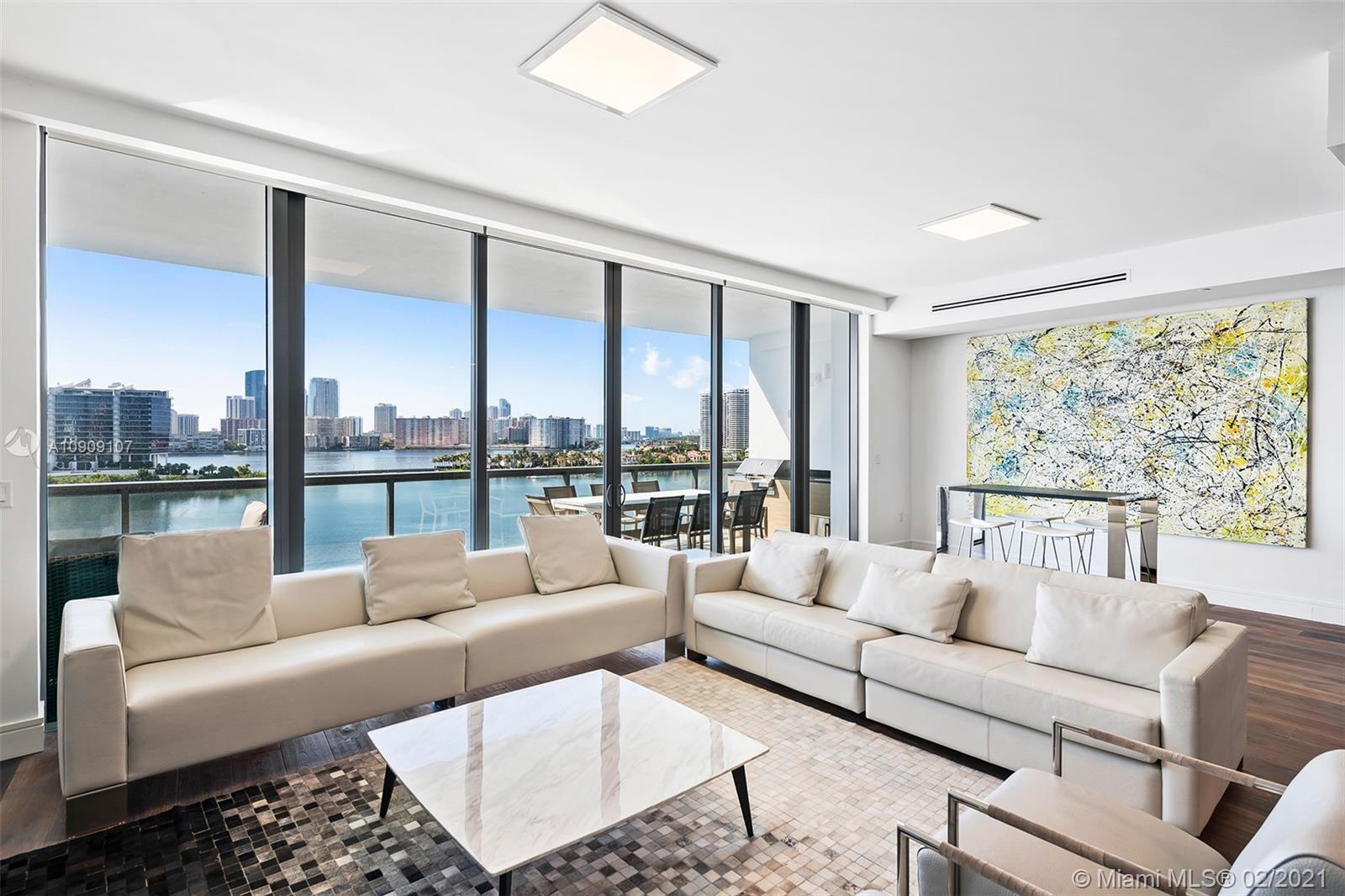 Great opportunity awaits at this beautifully designed waterfront building in Aventura. This 4 bedroom + den / 5.5 bath FULLY furnished residence offers unparalleled views of the bay/intracoastal, as well as ocean and the Sunny Isles skyline. Arrive at your private foyer, to a bright flow-through floor plan featuring top of the line finishes and 10ft sealing throughout. The unit also comes equipped with a smart home technology. Enjoy endless views from two separate balconies with one offering a built in grill. Building offers 5 star amenities, including a 4,000sqf fitness center, pool with cabanas and a cafe restaurant in the lobby.