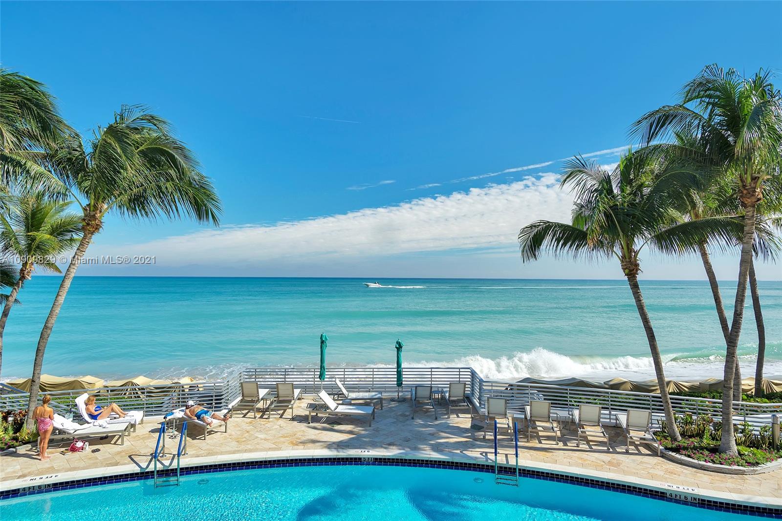 BEST VALUE IN THIS EXCLUSIVE & PRIVATE BOUTIQUE BUILDING ON HOLLYWOOD BEACH! THIS BEAUTIFUL DIRECT OCEANFRONT CORNER RESIDENCE HAS PRIVATE ELEVATOR & FOYER.THREE LARGE BEDROOMS, 3.5 BATHS & LARGE BALCONIES FROM EVERY ROOM W/ INCREDIBLE OCEANFRONT & INTRACOASTAL VIEWS. MARBLE FLOORING, FINISHED CLOSETS, SEPARATE LAUNDRY ROOM W/FULL SIZE W/D. A BEAUTFULLY APPOINTED KITCHEN W/GRANITE COUNTERS & TOP OF THE LINE SS APPLIANCES.A SPLIT FLOOR PLAN OFFERS COMPLETE PRIVACY.OTHER AMENITIES INCLUDE POOL & BEACH SERVICE, BILLIARD ROOM, THEATER, FITNESS CENTER, MEN'S & WOMEN'S SAUNA & DIRECT ACCESS TO THE ADJACENT DIPLOMAT HOTEL & RESORT W/ROOM SERVICE TO 6 RESTAURANTS, AVAILABLE HOUSEKEEPING SERVICES & SO MUCH MORE! ENJOY THE FRESH OCEAN BREEZES & BEAUTIFUL SUNSETS IN THIS INCREDIBLE HOME IN THE SKY!