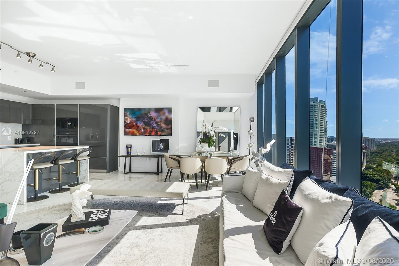 An immaculate corner unit nestled in the heart of Brickell, this 2-bedroom, 2.5-bathroom home is a seamless contemporary boutique chic condo with bay and skyline views of Brickell. Features include gorgeous marble floors, high ceilings, hurricane proof windows, Custom MAGNIFICENT closets, Italian glass cabinetry, marble counter tops, Sub-Zero, Wolf, Bosch, outdoor BBQ, Apple Home Technology. BUILDING FEATURES: Infinity-edge pool, state-of-the-art gym and spa deck with panoramic views of Biscayne Bay and Downtown Miami, 24/7 concierge, valet, pets are welcome and dog walker available, a TRUE GEM!