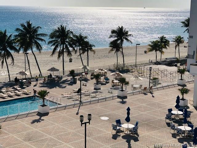 Large 1/2 Updated, new kitchen cabinets and S/S appliances, large ceramic tiles floor, 2 full bath, breathtaking views from balcony overlooking west, great Sunset and entertaining boat crossing on the open view of the intracoastal. Front ocean building with large private beach, private and secured beach access and beach chair service, 2 gyms, 2 pools, laundry room on each floor. Short distance to the Broadwalk of Hollywood with stores, restaurants and beach access to water sport facility. Building is part of Quadomain complex. Building just went thru a major 40YRS renovation and Roof and AC replacement.