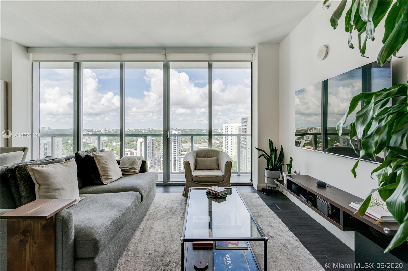 Bright and cozy corner unit with 2 bedrooms and 2 full bathrooms in a split floor plan. Great city views from the wrap around balcony. Unit offers stainless steel appliances, granite countertop, washer/dryer, and many upgrades such as light dimmers, Porcelanosa Italian tile, and top-quality blinds, including both regular and blackout blinds in the bedrooms. Designed by world-famous Arquitectonica, Axis on Brickell has incredible amenities: lap and resort-style pool with cabanas, hot tub, BBQ grill, state-of-the-art fitness center, club room with billiards tables and kitchen, bistro-style bar seating, kids playroom, business center, steam rooms, 24-hour security/concierge and valet parking. Located in the heart of Brickell, Miami, few steps away from supermarkets, pharmacies, metrorail