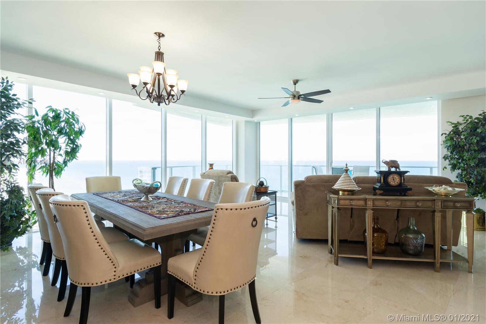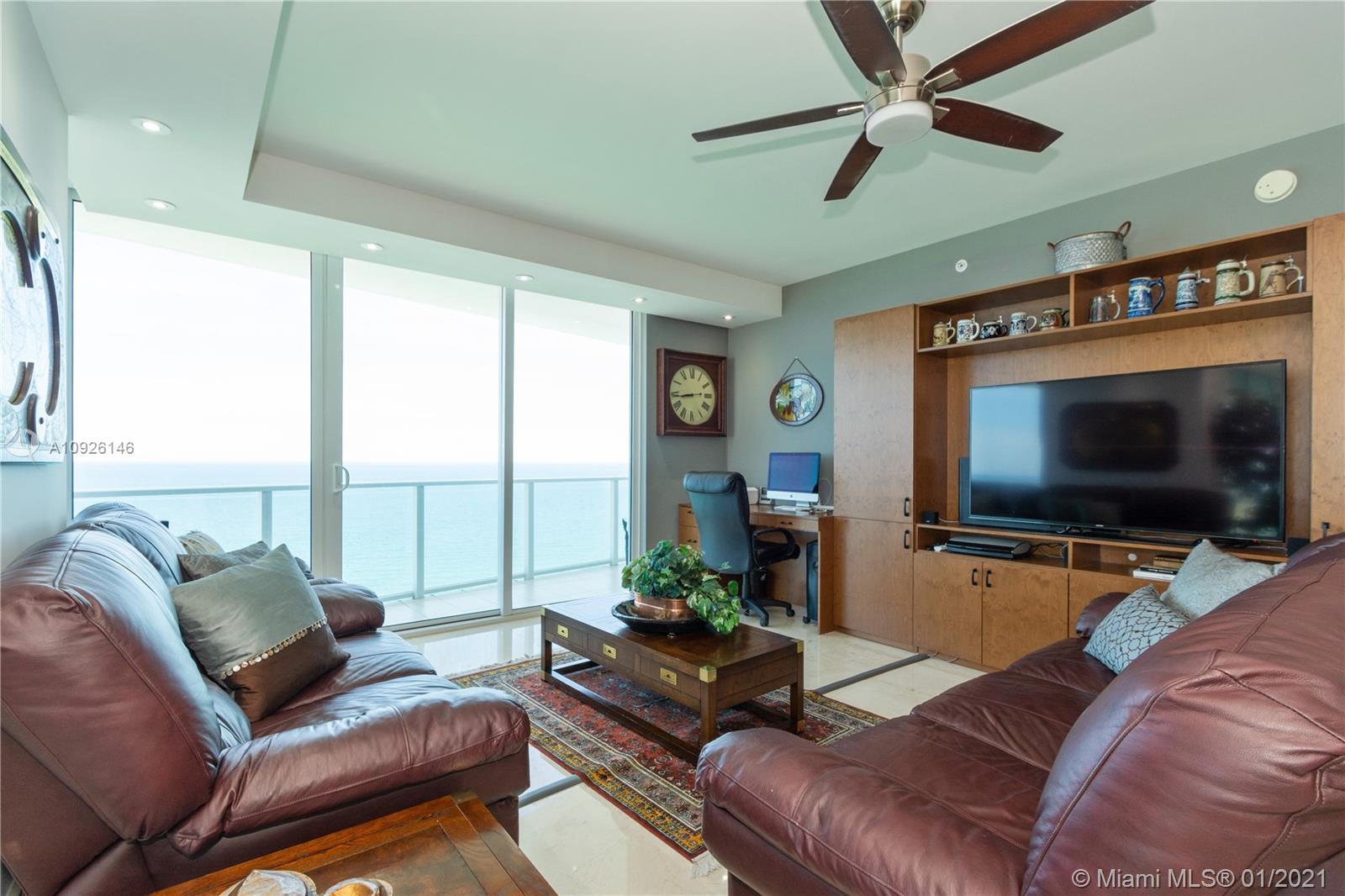 Fabulous Beachfront Residence. Direct access to pristine beach. Spectacular vistas of the Atlantic Ocean. This 3240 sq ft corner unit features spacious great room, 4 bedrooms, 4 and a 1/2 baths, guests family room, & interior laundry room. Wrap around terrace, 2 garage spaces & storage. Advanced technology "Smart Building" pre- wired for Wi-Fi high speed internet, data/voice/cable TV access. Marble & wood floors, gourmet kitchen, top-of-the-line appliances, floor to ceiling impact glass doors & windows, motorized shades with remote, wet bar, walk-in closets. 3 zoned central A/C units. Amenities include fully equipped fitness room, heated pool & clubhouse. His & hers locker room with sauna & massage area, children's lounge, 24 hrs attended lobby, secured parking garage and valet parking.