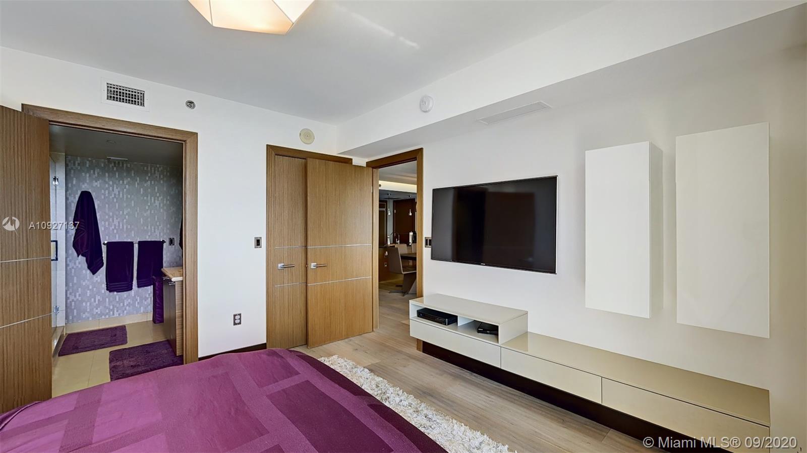 This stunningly upgraded residence features direct unobstructed views of Biscayne Bay and Miami Beach that will greet you as soon as you step in! A masterpiece of design with attention to details, this unit has spectacular views of Biscayne Bay and the City from every room! Soaring 12ft ceilings throughout this rarely available 08 line. Pristine conditions, offering over 1,300sqft. Quick access to/from I-95, strategic location. Walking distance from City Center, restaurants and movie theater. Must see. 5-star resort amenities. (den was converted into a full bedroom/media room).