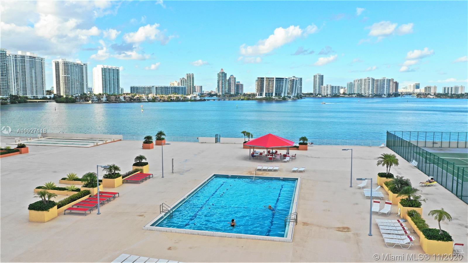 Best views in the building -Intracoastal. This 7th-floor Condo offers 2 big, bright split Bedrooms and 2 Master Baths. This property is renovated with a new balcony, enjoy a delicious refreshment outside with outstanding water views. Maintenance includes premium cable, internet, doorman during the day in addition to a security guard, new gym, new library, new tennis courts, new pool, and more. Restored garage! Walking distance to Sunny Isles exclusive beach, grocery stores, and many dining options! Neighborhood park around the corner and boat dock across the way