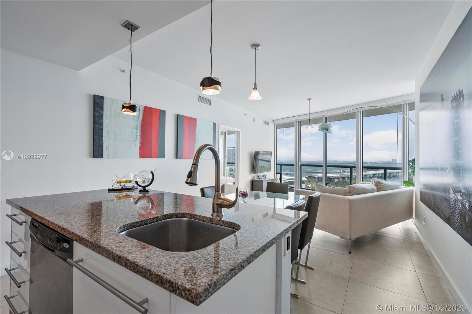 MarinaBlue. Beautiful 2Bed/2.5 Bath with direct east facing bay views. Hard surface floors, custom closets and fully furnished. This line boast the most closet space of any other line. Additional features granite countertops, stainless steel appliances and upgraded pendent lighting. Amazing location with easy access to SOBE, Wynwood, Brickell, Design District and MIA.