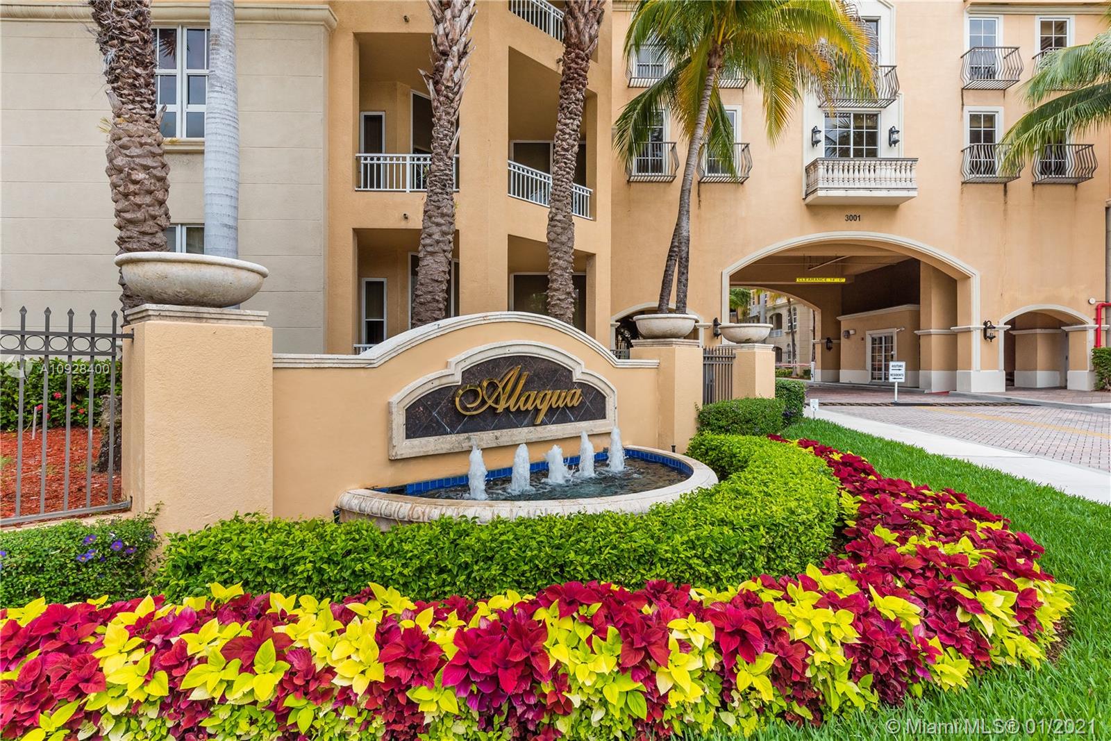 BEAUTIFUL CONDOMINIUM UNIT LOCATED IN THE PRESTIGIOUS ALAQUA. GREAT LOCATION IN AVENTURA. 2 BEDROOMS 2 BATHROOMS. GREAT FLOOR PLAN. NEW VINYL FLOORING, BEAUTIFUL KITCHEN WITH STAINLESS STEEL APPLIANCES,GRANITE COUNTER TOP. 2 LOWER LEVEL COVERED PARKING SPACES. THE ALAQUA CONDO FEATURES SPECTACULAR AMENITIES INCLUDING OVER SIZE POOL, HEATED SPA, FITNESS CENTER, 24 HRS GUARD, AND GATED COMMUNITY. CLOSE TO BEST SCHOOLS,RESTAURANTS, SHOPPING AND ENTERTAINMENT.