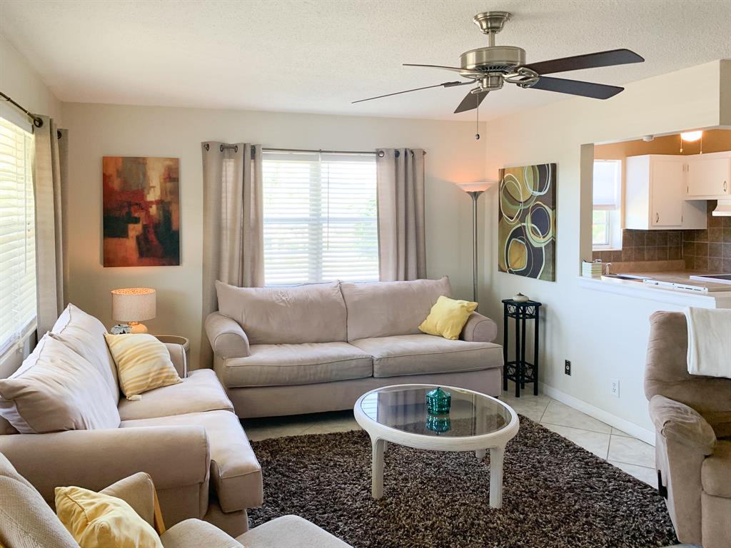 Furnished Turnkey Condo on the 2nd floor, a corner lot in Century Village, a 55+ community with lots of activities. This 1 bedroom has all your needs, a great covered patio to enjoy sitting outside. NEW AC!!! the corner unit are the only ones with a central AC! Only 20 min from the beach, close to great shopping and the airport. Come and enjoy the winter in a great community!