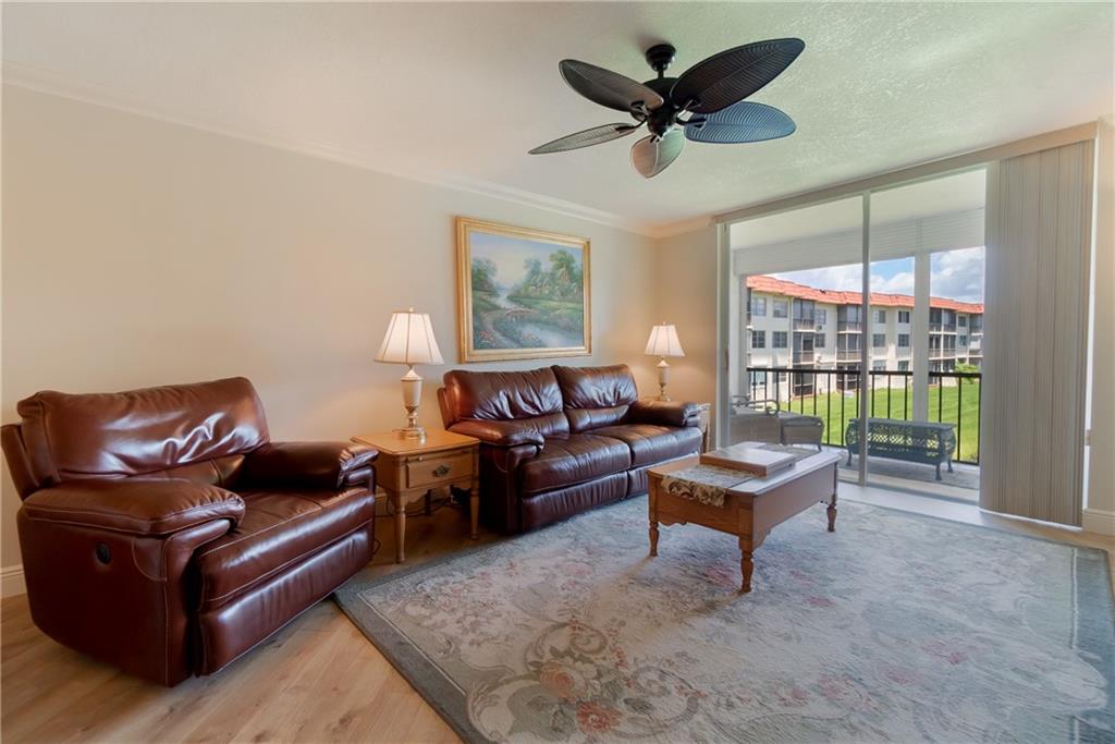 UNIQUE & BEAUTIFUL! OPEN KITCHEN! High Ceilings, Rich cherry cabinetry, EXTRA storage, GRANITE, expanded countertops, full brick backsplash, SS appliances. Updated bathrooms, Granite & Corian countertops. REAL WOOD FLOORS IN LIVING AREAS & BEDROOMS. Knockdown ceilings. Crown Moulding everywhere! Fully furnished.Water &18th green golf views! 24 hr guard gated; Recreation Lease PAID UP IN FULL! FREE golf (except cart fees) on two 18 hole courses (PGA & Par3); Amenities include Restaurant, Billiard Room, Bbq/Picnic Area, Clubhouse, Courtesy Bus, Exercise Room, Heated Pool, Library, Putting Green, Sauna, Shuffleboard, Tennis, Pickle Ball, Bocci, Vehicle Wash Area, Electric Car Charging Station. Close to shopping, dining & highways. 15 min. to the beach. 55+ age required; JUST PERFECT!