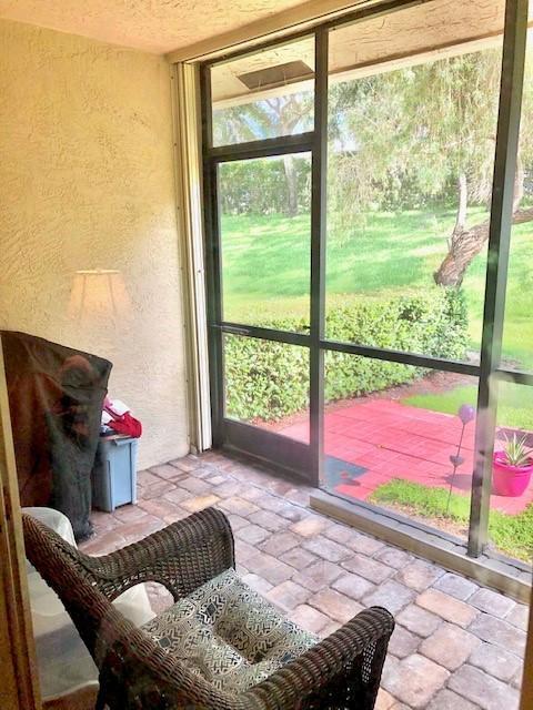 Beautiful 2 bedroom plus den / 2 bath 1 car garage villa in spectacular 55+ community. Kitchen features granite counters, tumbled marble back splash, deep stainless sink, built in bar area with extra storage. Master bedroom features new bath, vaulted ceiling, hardwood floor and walk in closet. Second bath has been updated along with new water heater. Screened porch is a great extension of living room. Home has accordion shutters. Community features a beautiful clubhouse, 3 pools, hot tub, fitness, ballroom, shuffleboard, tennis, bocce and more.
